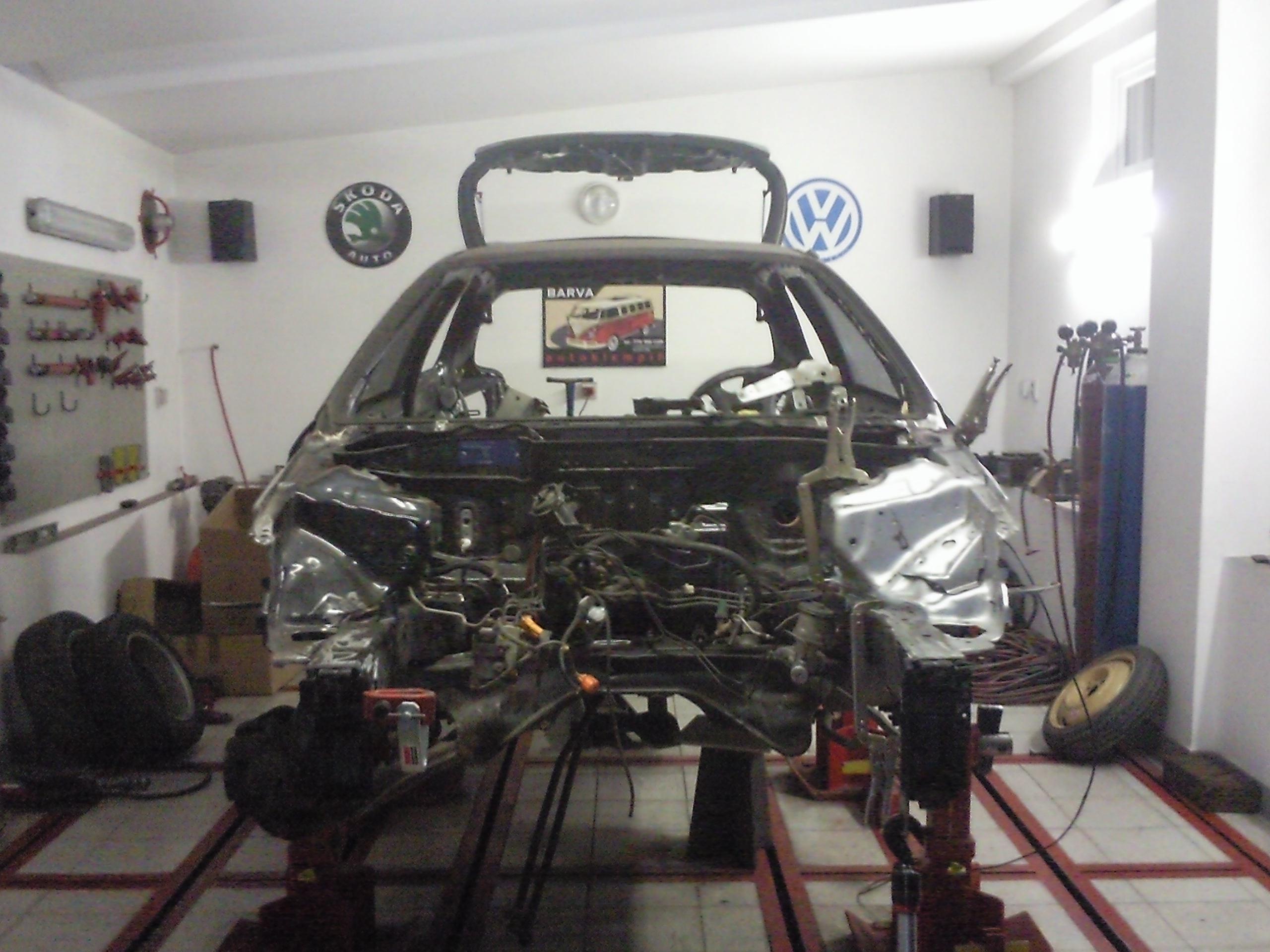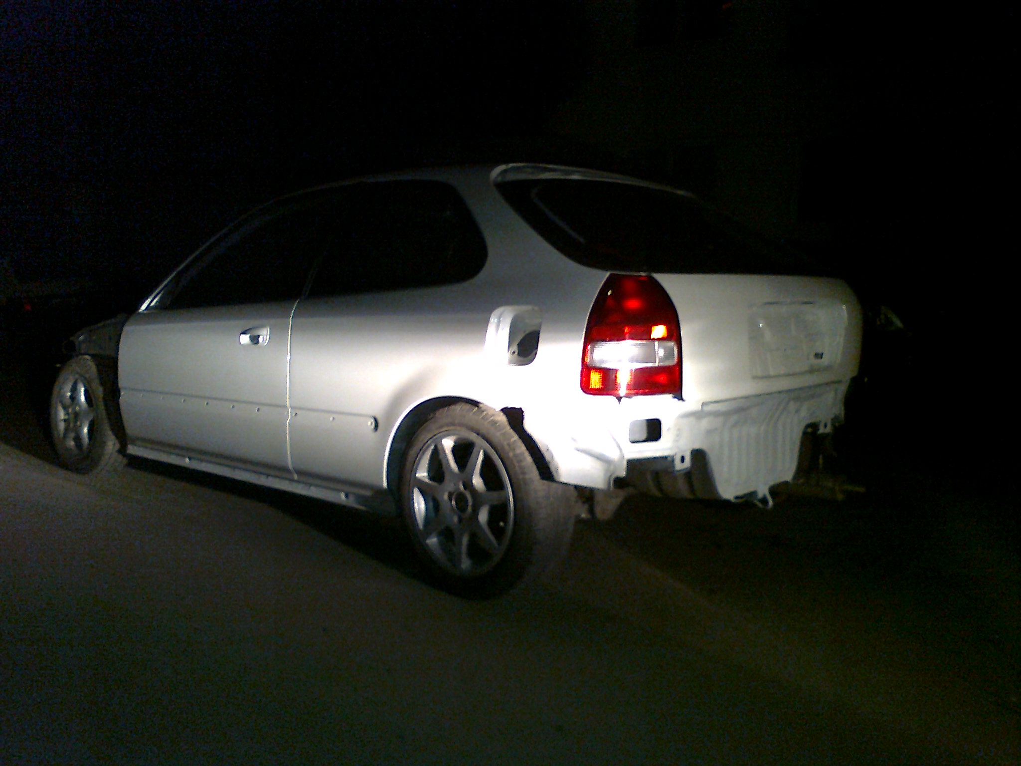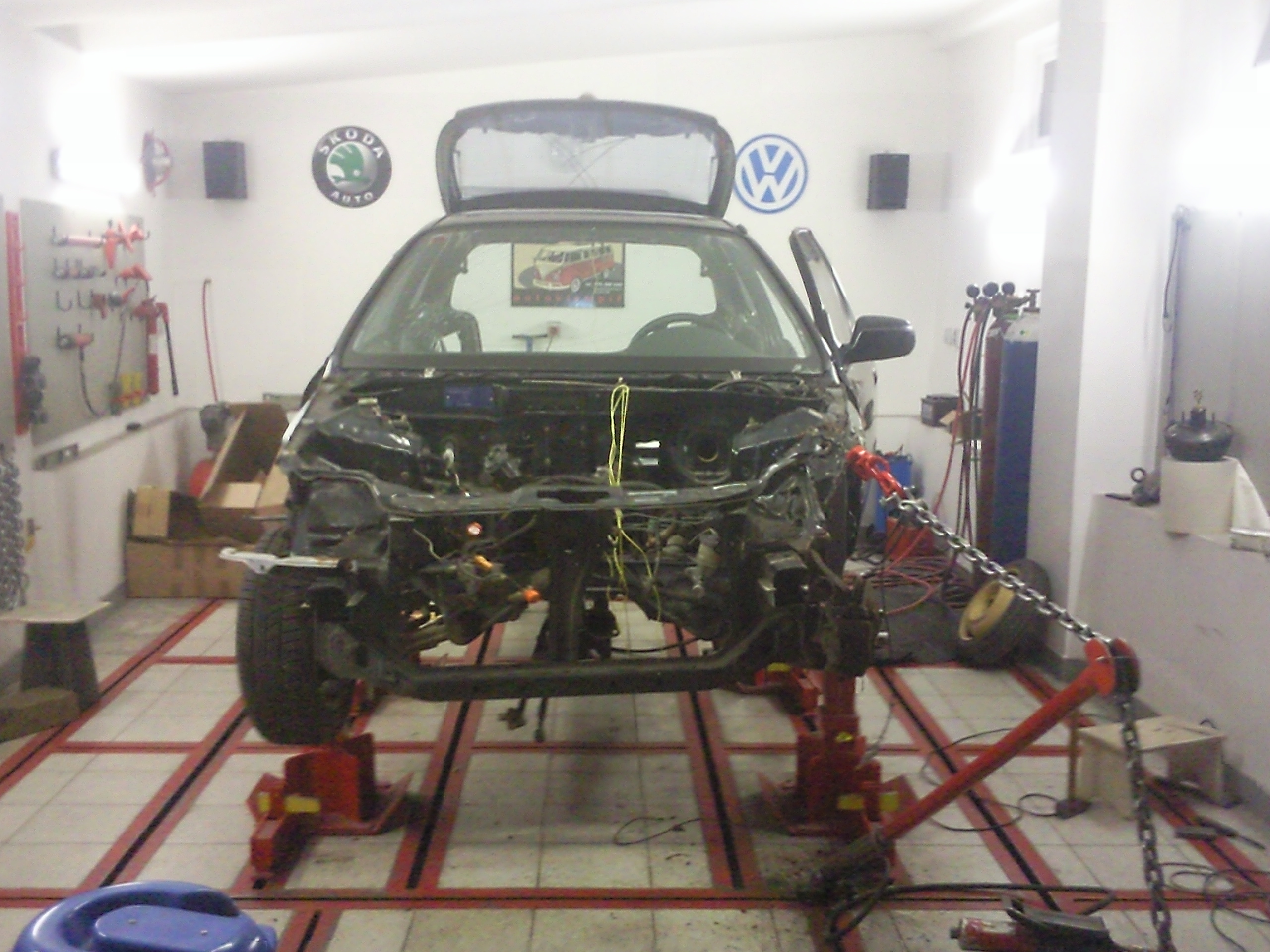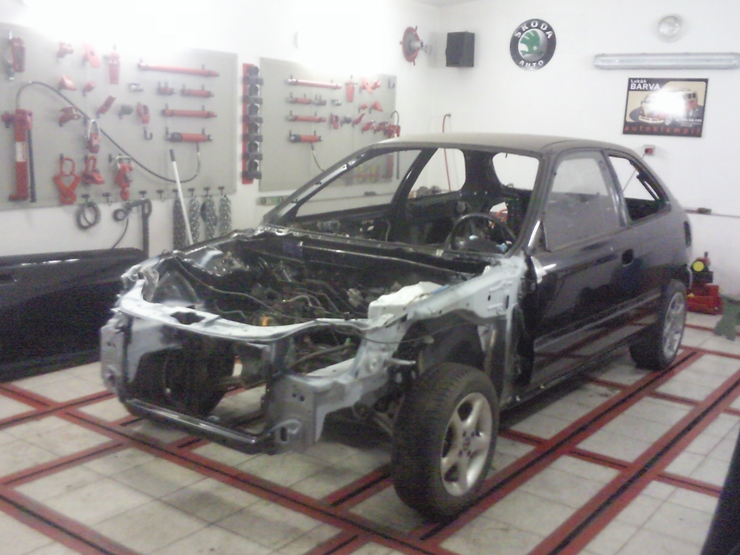 jedna momentka ze včerejšího nočního převážení zpět ke klempířovi. V týdnu se doskládá a z venku už bude kočka:), k fotce motoru- vím, že je neumytý a škaredý. Věci kolem motoru se budou řešit později. Teď nebyl čas, muselo se to tam rychle dat a zprovoznit