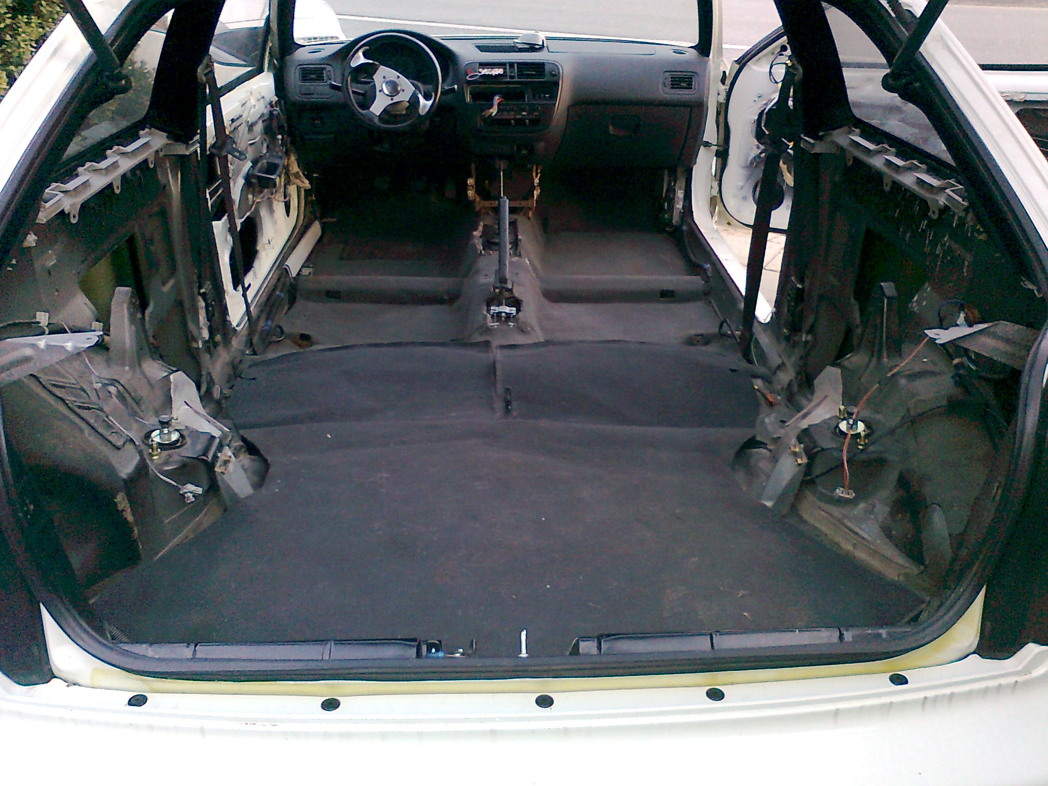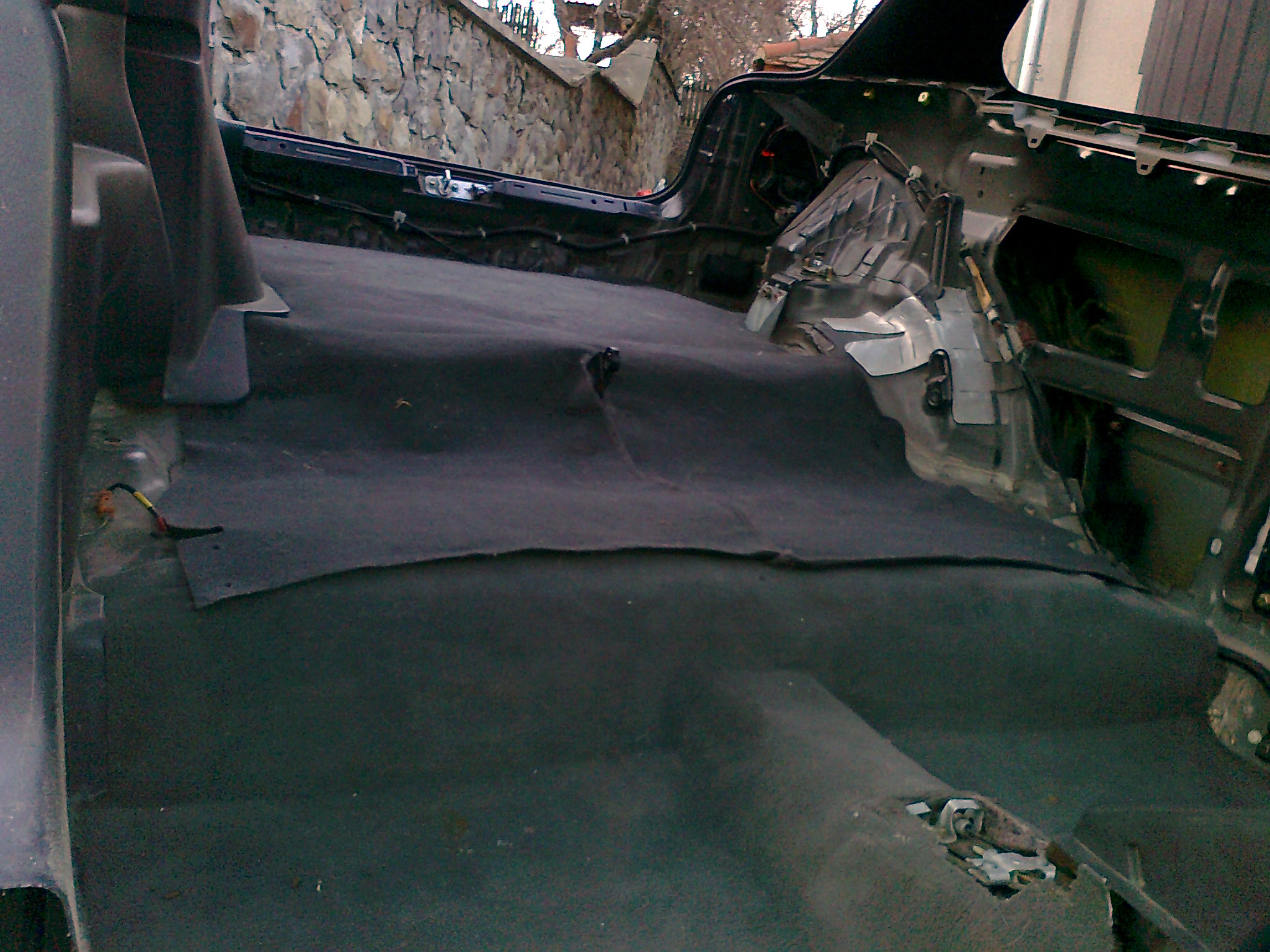 Tady je foto, když sem tam jen tak zkusil dat koberec a na něj koberec z kufru. vize je taková, že to samozřejmě bude jeden kus a bude černý. Ale něco tomu chybí a nelíbí se mi to až tak moc. A nebo pak dát jen krátký koberec a zadek nechat nalakovat do bíla. Ale tím to dle mě ztratí útulnost. Su tak nějak v koncích jak to vymyslet aby to vypadalo a nemusel sem tam dávat zadní sedačky. které v mém případě nemají smysl. ( Nebudu v tomn vozit víc jak 2 lidi a budou tam nataženy pásy z předních sedaček )