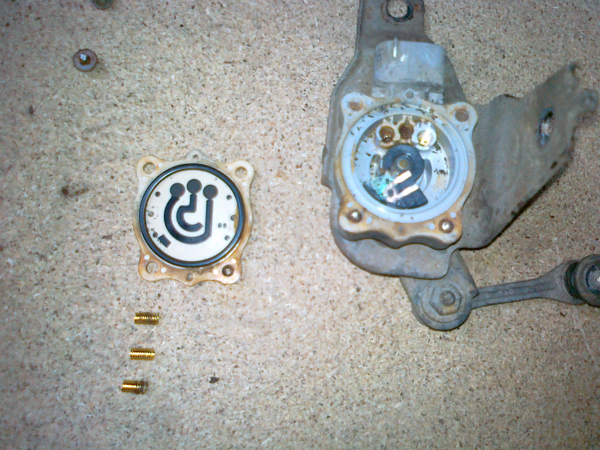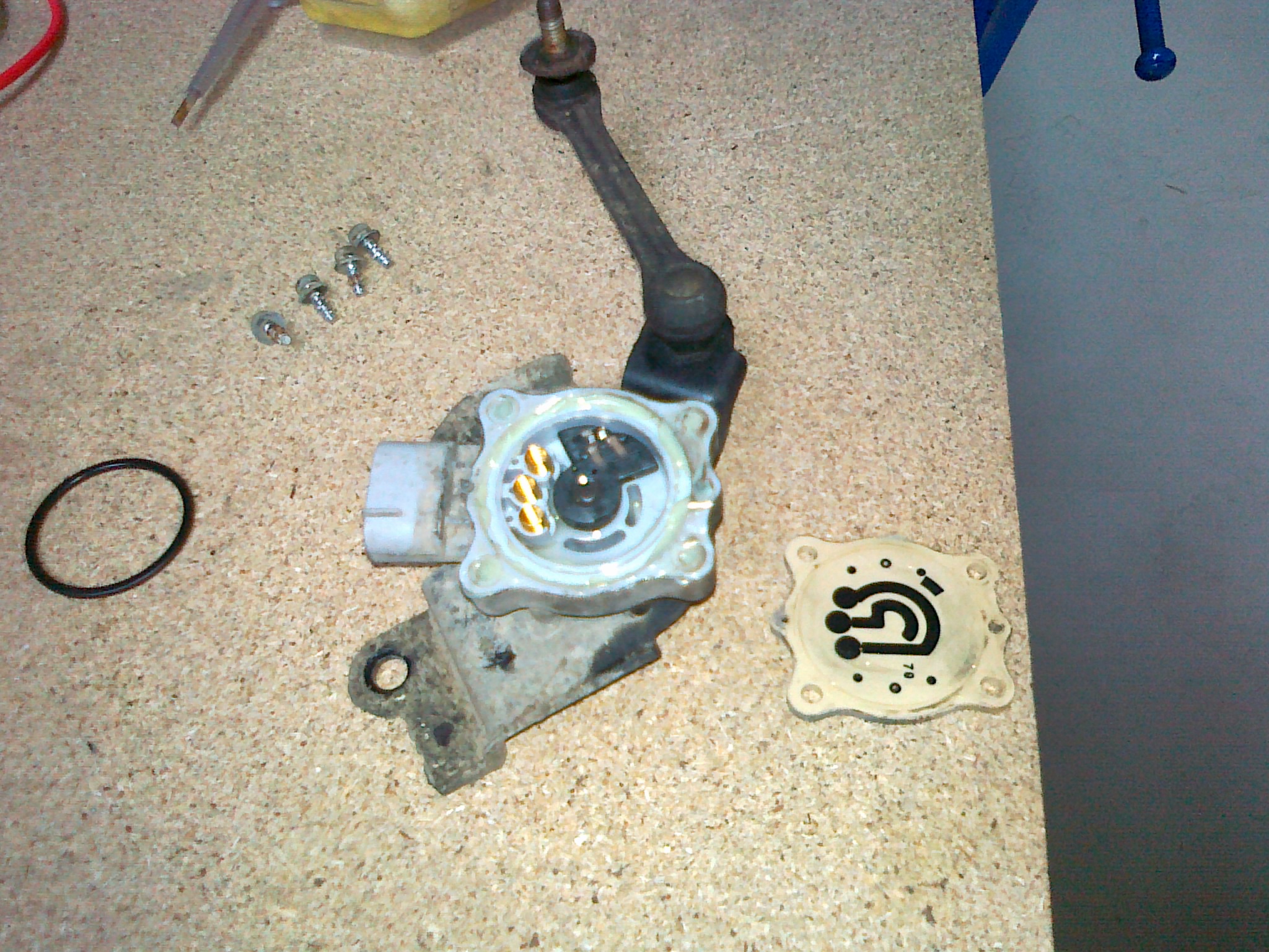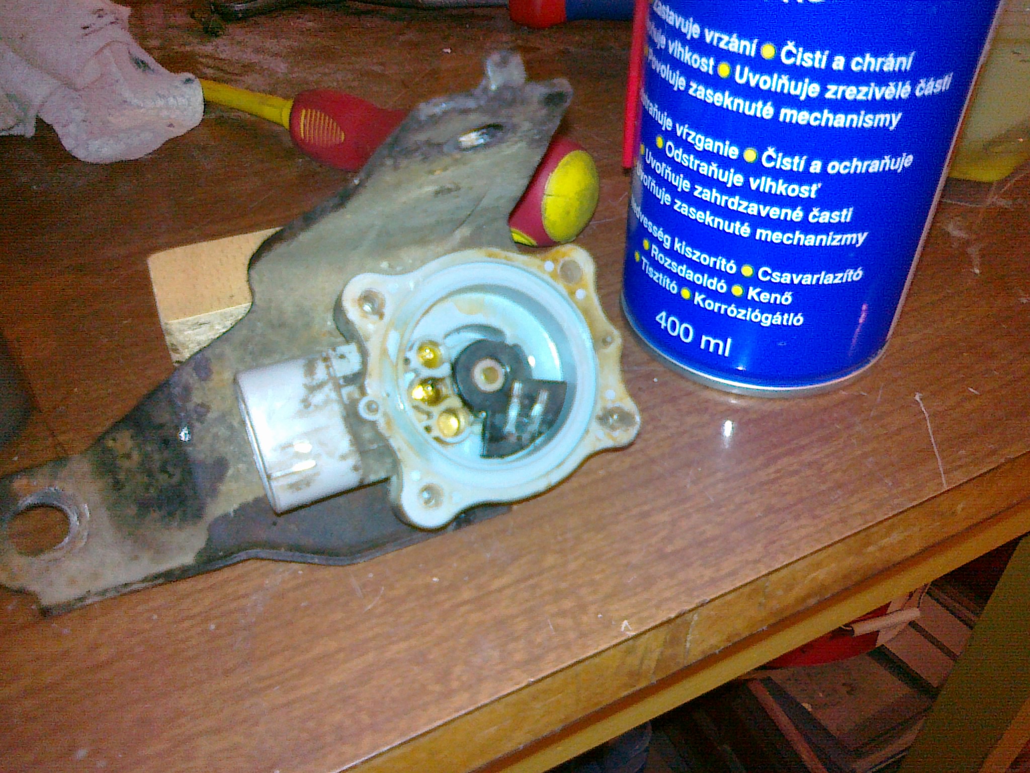 Zpět k hřídeli, takže hřídel je opět otočná, ze strany gufera jsem ji namazal mazacím tukem (nedávejte ho tam moc, nepůjde nasadit gufero) a nasadil gufero (jen pro zajímavost má rozměr 21-10-6(5) a stojí cca 19kč) to je na výšku trochu menší jak originál. Vzhledem k tomu, že jsem měl zarezlé šrouby krytu(s odporovými drahami) tak jsem 2 utrhl a musel je odvrtat. Pak jsem použil druhé, ale ještě před zašroubování jsem díry vyplnil mazacím tukem aby byl závit chráněn před vlivy vlhkosti. Takže čidlo opraveno !!! Je to tam.