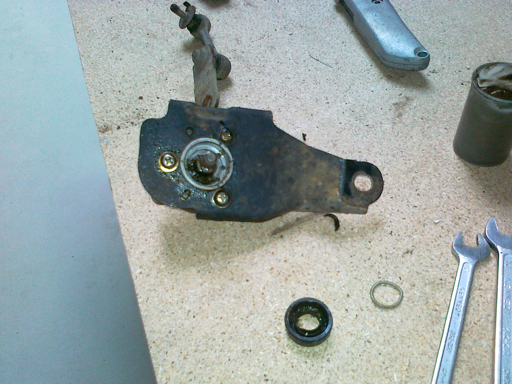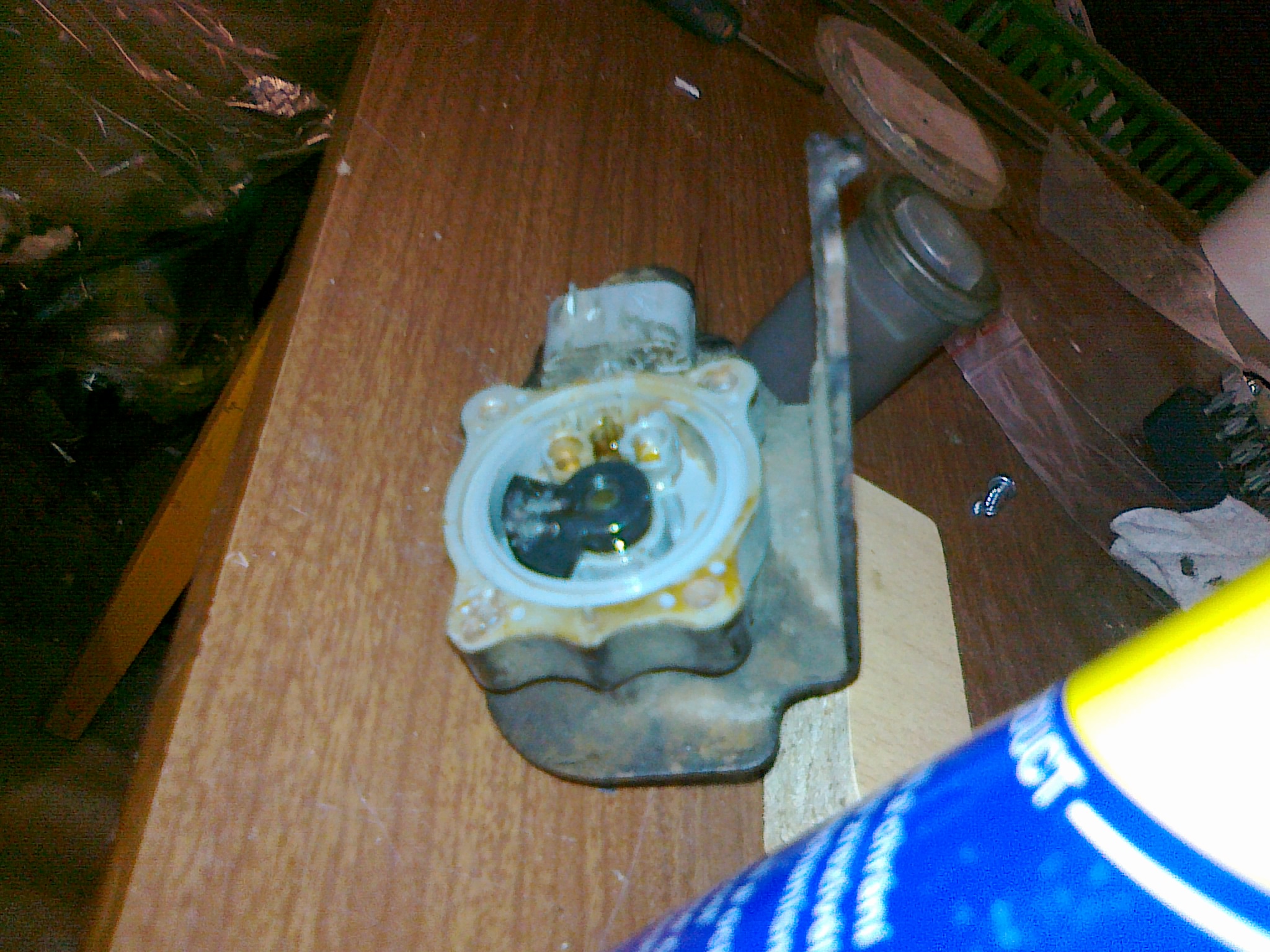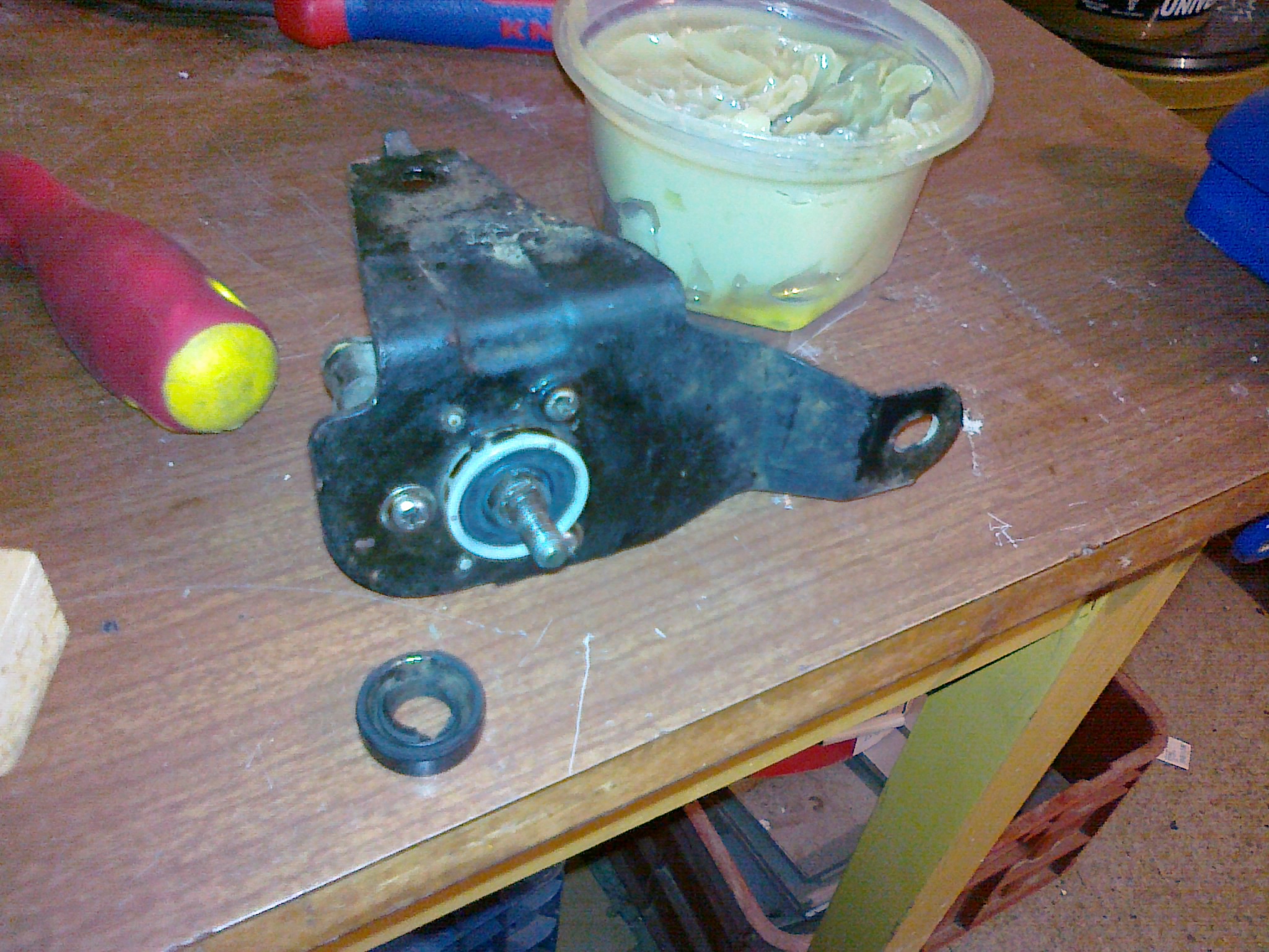Zpět k hřídeli, takže hřídel je opět otočná, ze strany gufera jsem ji namazal mazacím tukem (nedávejte ho tam moc, nepůjde nasadit gufero) a nasadil gufero (jen pro zajímavost má rozměr 21-10-6(5) a stojí cca 19kč) to je na výšku trochu menší jak originál. Vzhledem k tomu, že jsem měl zarezlé šrouby krytu(s odporovými drahami) tak jsem 2 utrhl a musel je odvrtat. Pak jsem použil druhé, ale ještě před zašroubování jsem díry vyplnil mazacím tukem aby byl závit chráněn před vlivy vlhkosti. Takže čidlo opraveno !!! Je to tam.