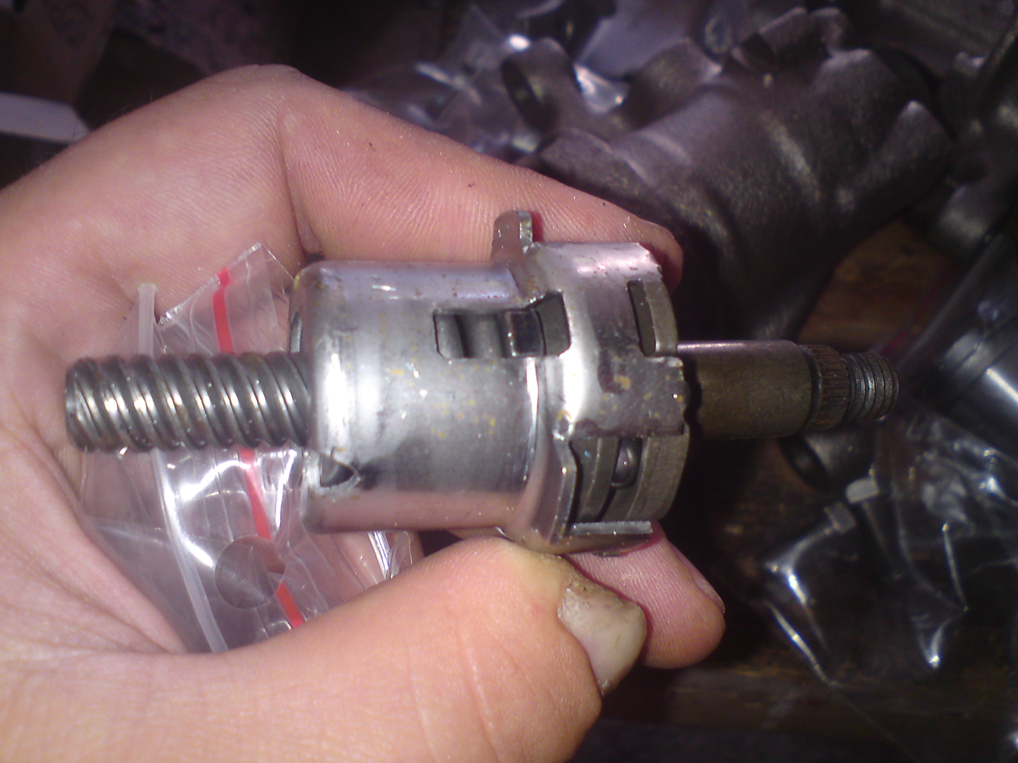 Tady je fotka jak to vypadá uvnitř, občas se stane že to vyrezne, zatuhne a pak to nefunguje jak má, zvlášť u starých paštik je s tím práce jak na kostele.... pak je snadnější koupit už repasnutý brzdič, je to levnější a míň pracný..