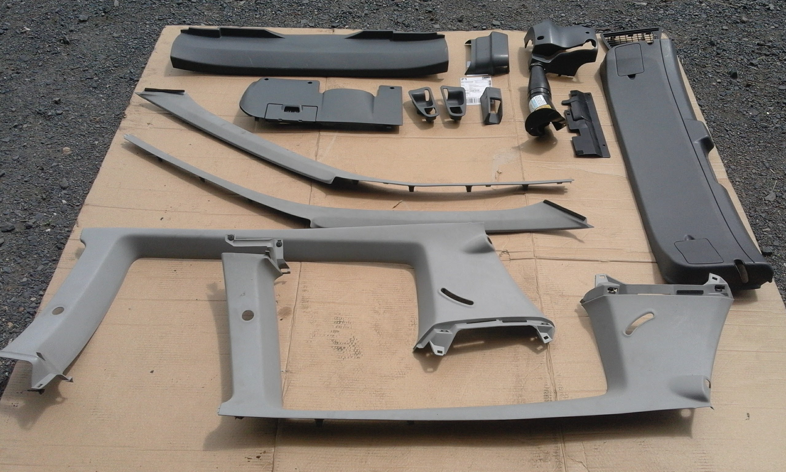 šedý, potažený tmavě šedou alcantarou, řidičova strana mírně popraskaná od slunce, jsou pro el. okna