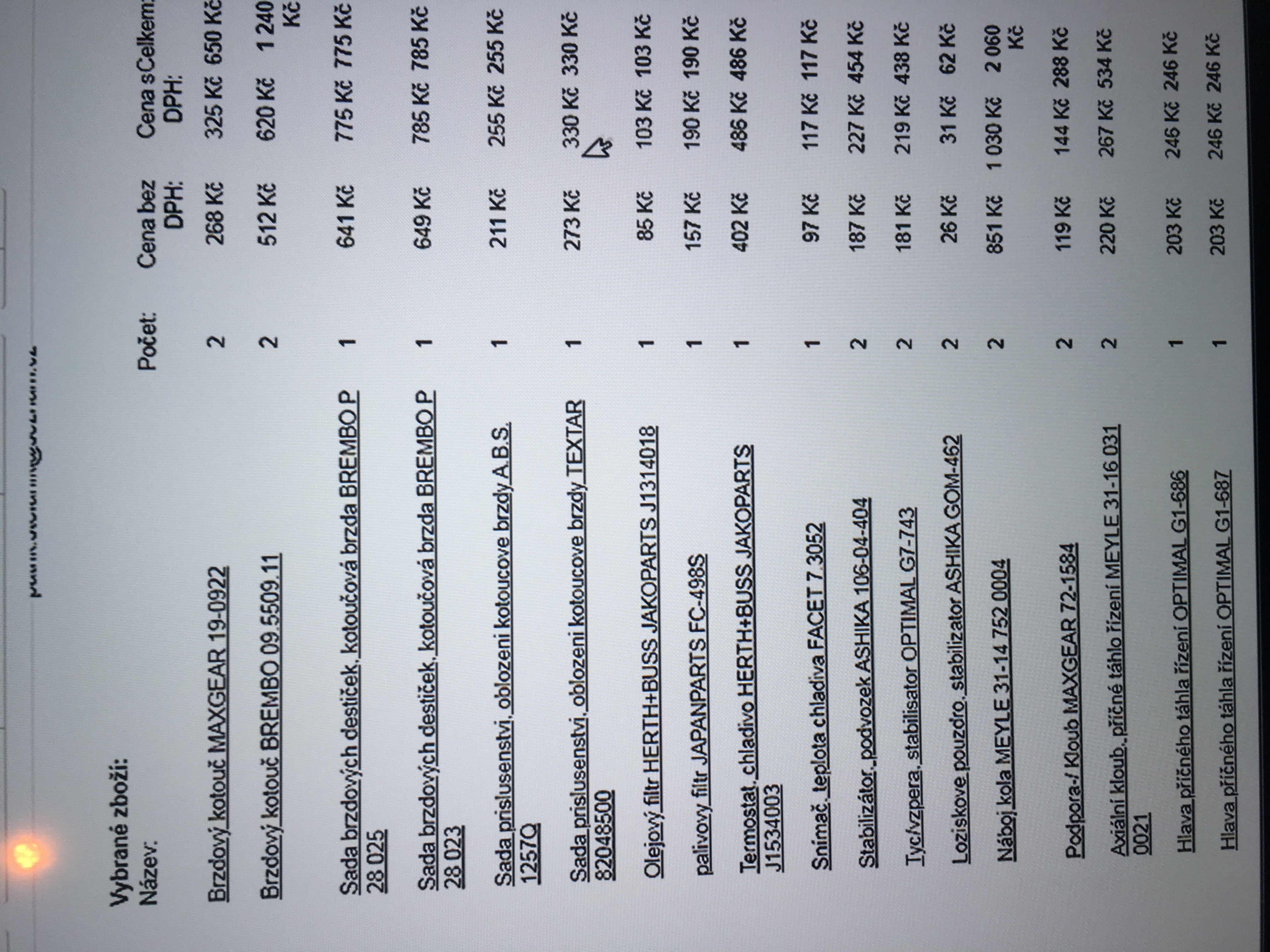 Zdravím prodam úplně nové díly které jsem ani nevyzlousěl ani nevybalil z krabice. Koupil jsem na spátny typ a leží mi to tu. Necekam plnou cenu ale aspoň 3 000 bych chtěl za celej ten batoh. Co tam není( lambda,čidlo, olej, filtr olejová) kdyby něco tak se ptejte Úsměv v příloze zasílam fakturu pro přehled cen