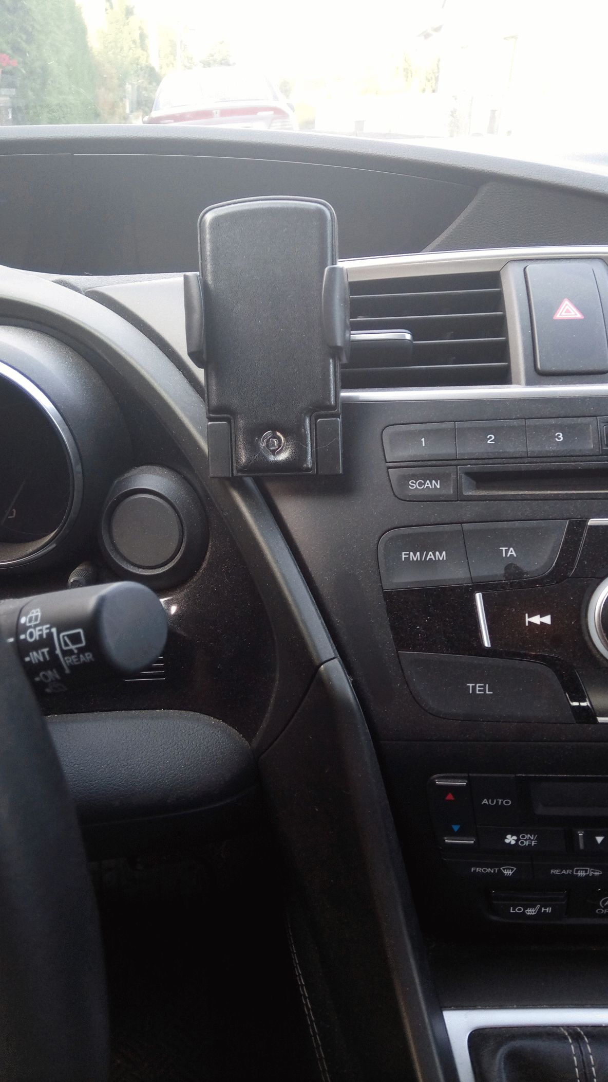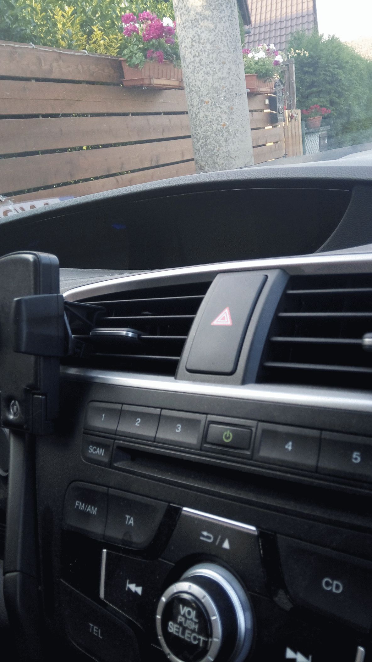 pocitově dost tuhá, přeci jen se telefon klepal podle toho, po jaké silnici jsem jel. Takže to dopadlo, viz. ten obrázek. Výhoda je, že se těmi mech. drapáčky dá eliminovat sklon palubky, takže je teď mobil pěkně na dosah, rozumný sklon, že se v něm neleskne sluníčko, mobil nevadí výhledu kamkoliv...