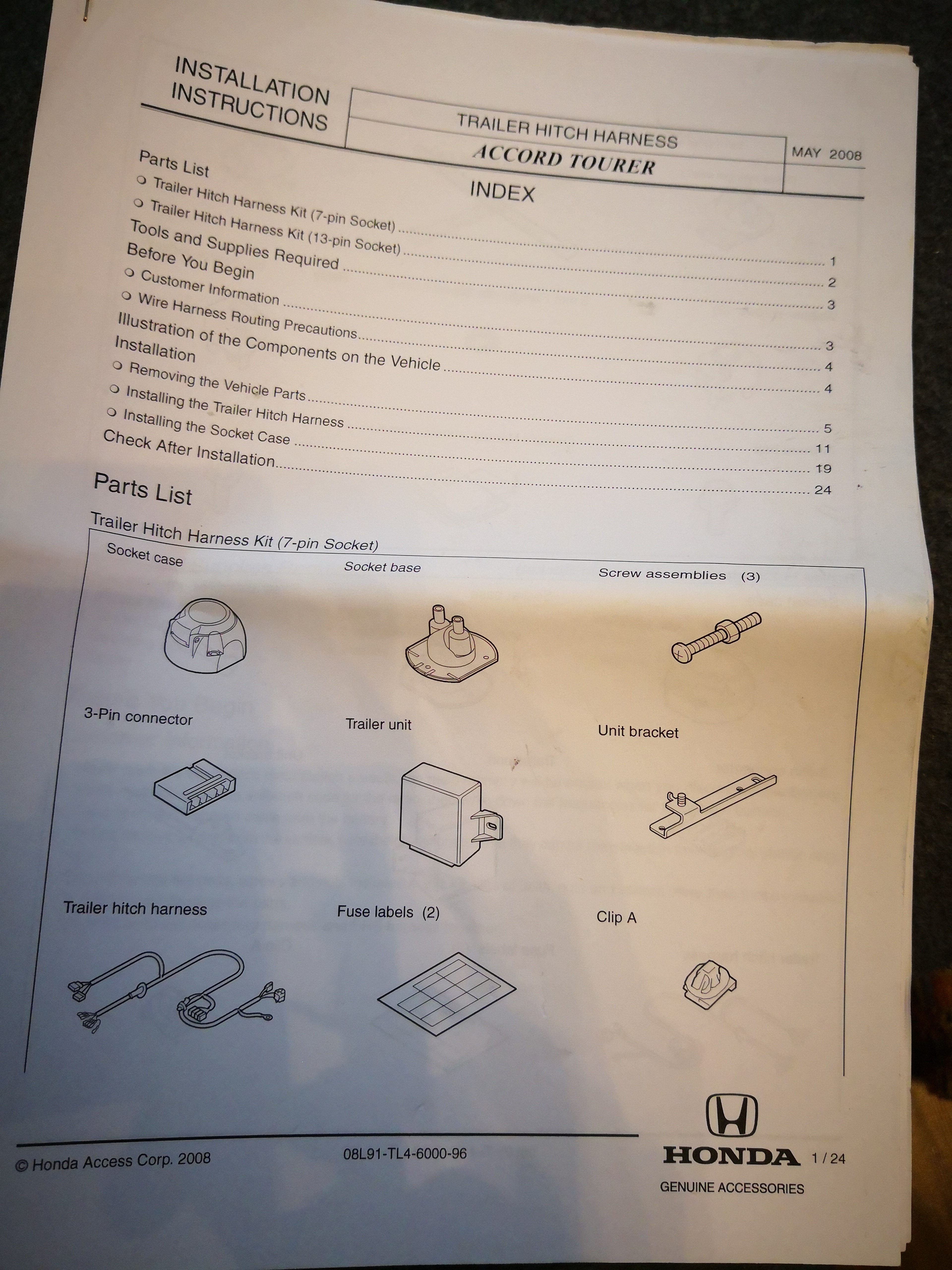 NZ. OK. Dám sem jen výpis materiálu, který je součástí sady. V instalaci jsou drobné rozdíly dle výbavy - parkovací senzory, alarm.