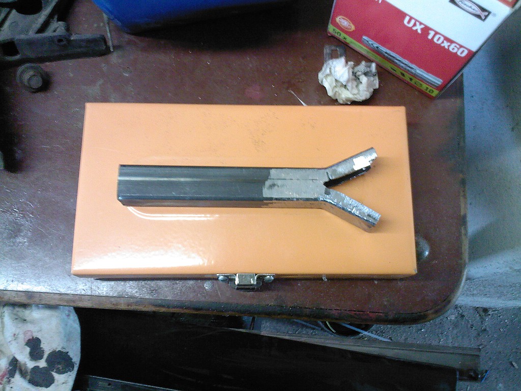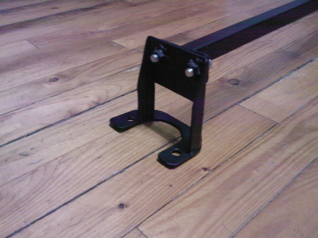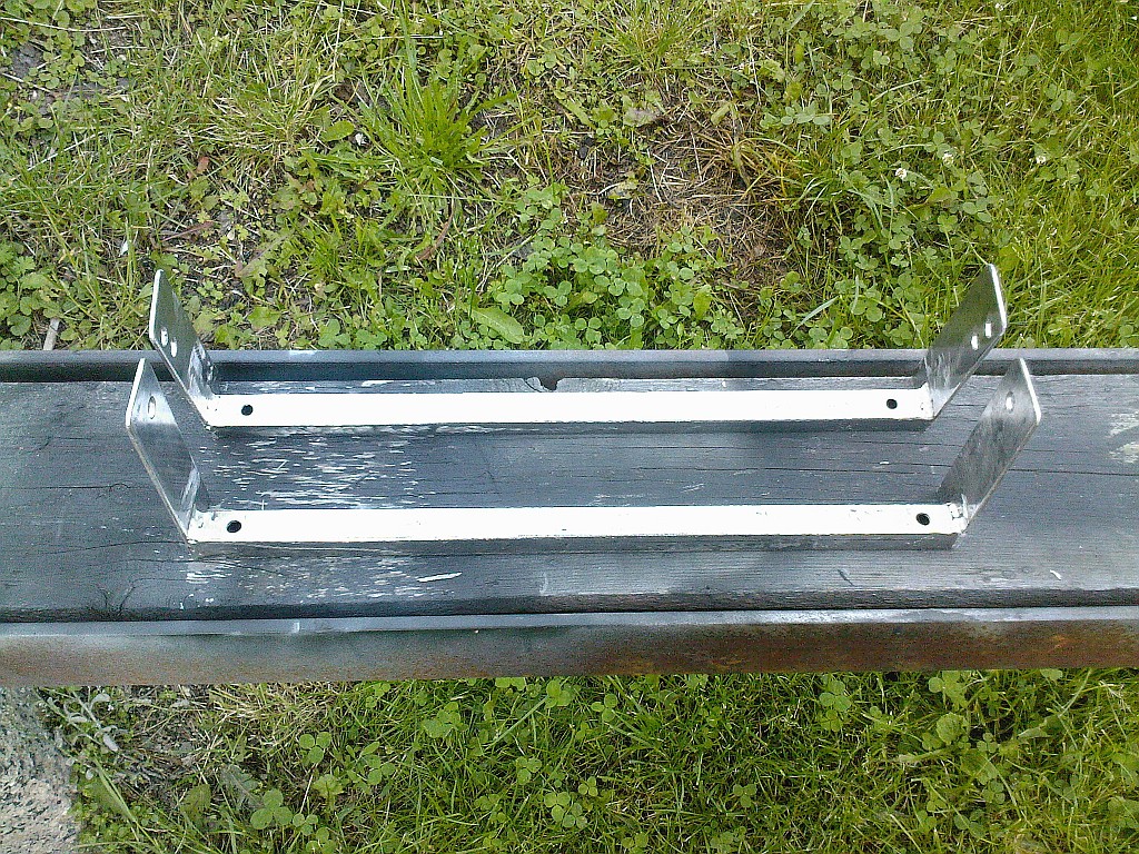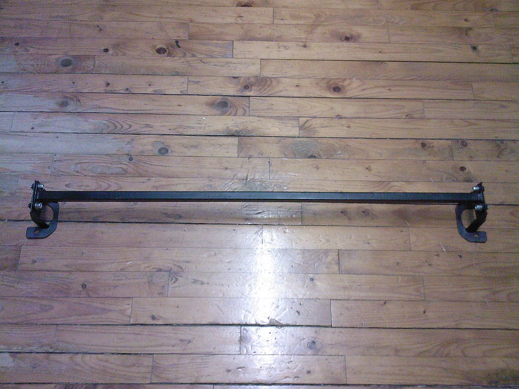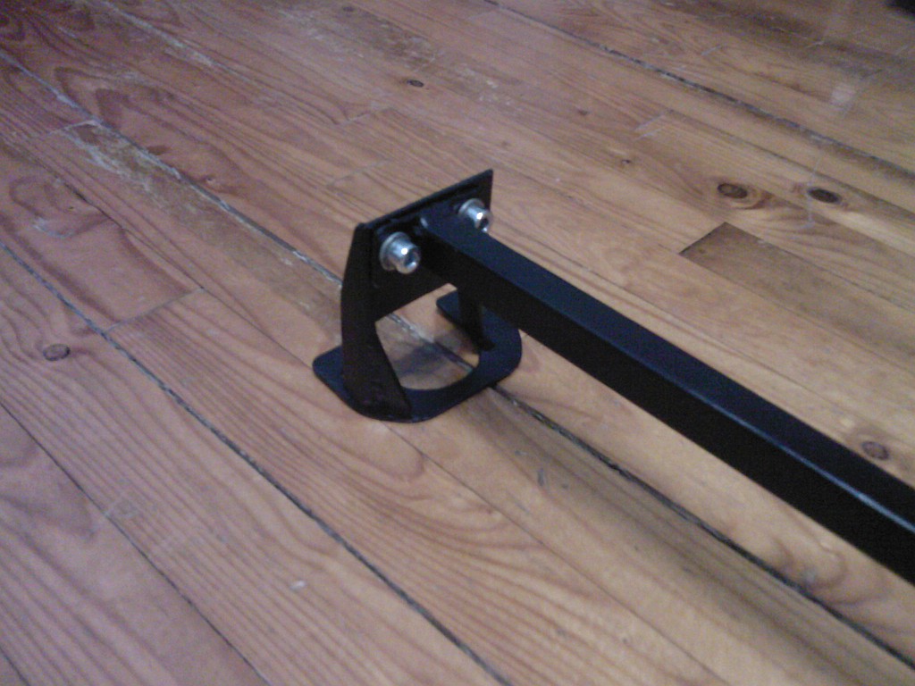 Nárazník už je zpět a dneska jsem konečně dodělal zadní rozpřeru. Laminátovou tyč jsem nakonec zavrhnul, protože při přijatelný pevnosti vážila prakticky stejně jako ocelovej jakl, kterej byl o dost pevnější. Patky jsem si vyřezal a vybrousil doma, takže sice nevypadají tak pěkně jako při řezání plazmou, ale mě to stačí a na funkci to žádnej vliv nemá Úsměv