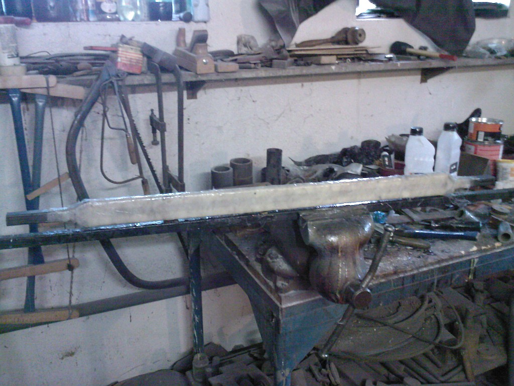 Dneska jsem se pustil do výroby zadní rozpěry. Původně měla být celokovová, ale nakonec bude z laminátu a do ní budou vložené kovové patky. Na ty ale přijde řada až se auto vrátí z laku, abych si mohl pořádně rozměřit rozteče šroubů co drží tlumiče, takže zatím nahodím jen pár fotek laminátové tyče Úsměv
