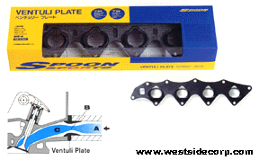 The innovative Spoon Sports ventuli plate increases mid-range horsepower and gives added torque. The ventuli plate replaces the stock intake manifold gasket. It's unique design gives the air flow a more streamlined approach towards it's entry into the combustion chamber. Good for about an extra 6-8 midrange HP. Available for the B16A/B16B and B18C5 engines.
