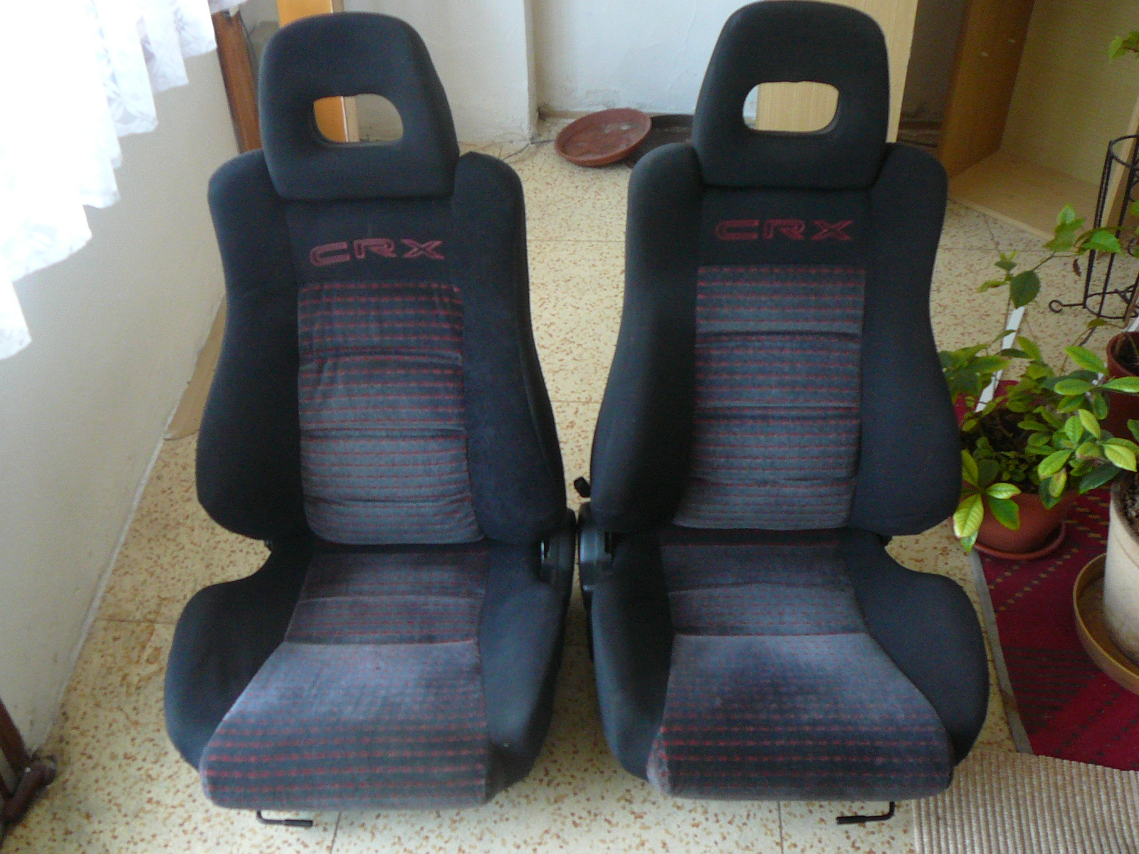 prodám sedáky z CRX II generace. Řidičův má malinký povrchový propal, boky v opěrné části jsou nově čalouněny (ještě si to nesedlo, proto je ješte lehce krabatý-vše viz. foto),je to jiný typ látky, ale nejde to moc vidět. Spolujezdcův je bezchyb.Jsou v dost dobrém stavu,vše funguje-nutno vidět. cena 3000,-