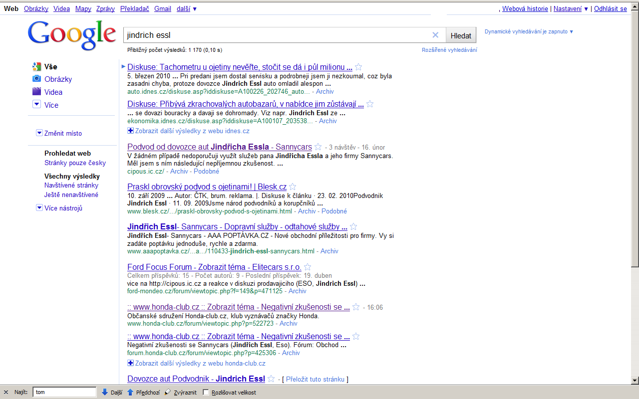 na prvych 7 hitov su dva ako kontakt na firmu a vo vsetkych ostatnych sa v diskusii nachadza o nom len tvoj pribeh konciaci odkazom na linku tudy odkaz