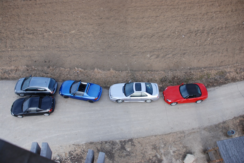 Tři Honda karkulky OK a porsche stíhá S2000. Velmi šťastný Fotila tydlifonem osoba blízká. Se stydím