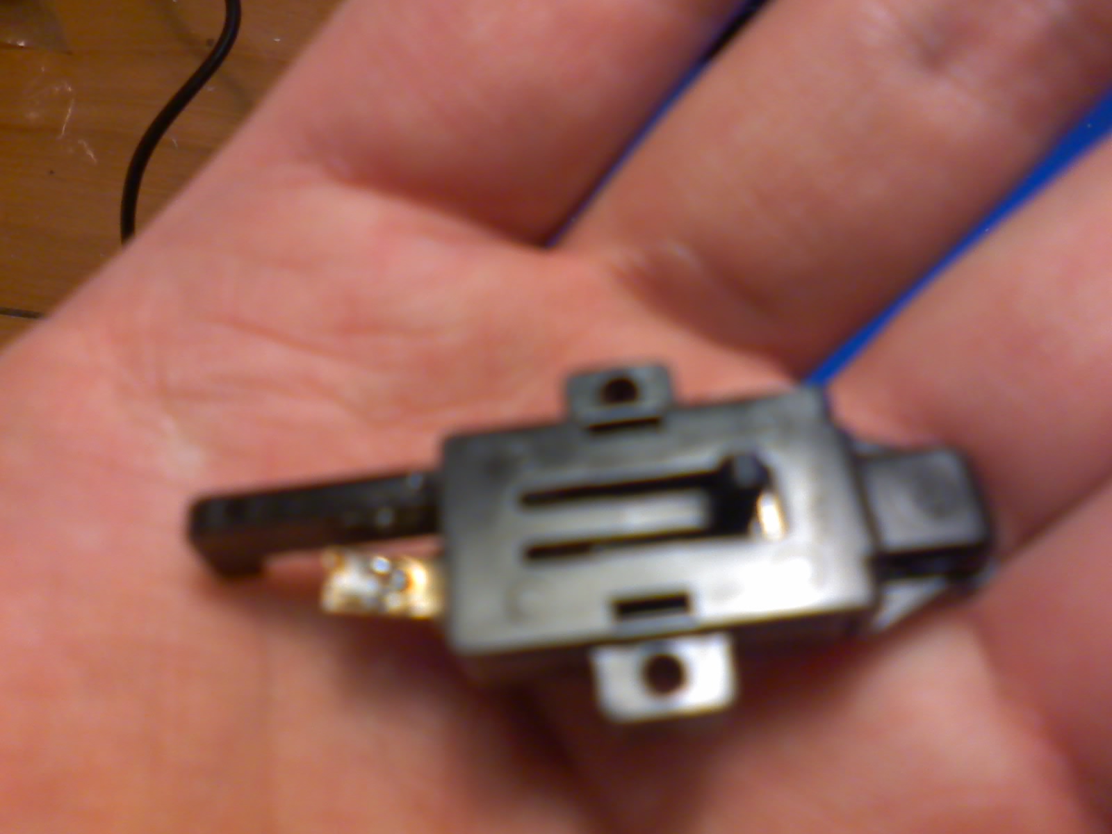 Dyž sem po akrobatickým zákroku spínač vydělal (malá černá plastová cca 2cm dlouhá krabička na dvou šroubcích a s přívodem dvou tenoučkých drátků) zjistil sem, že se v něm