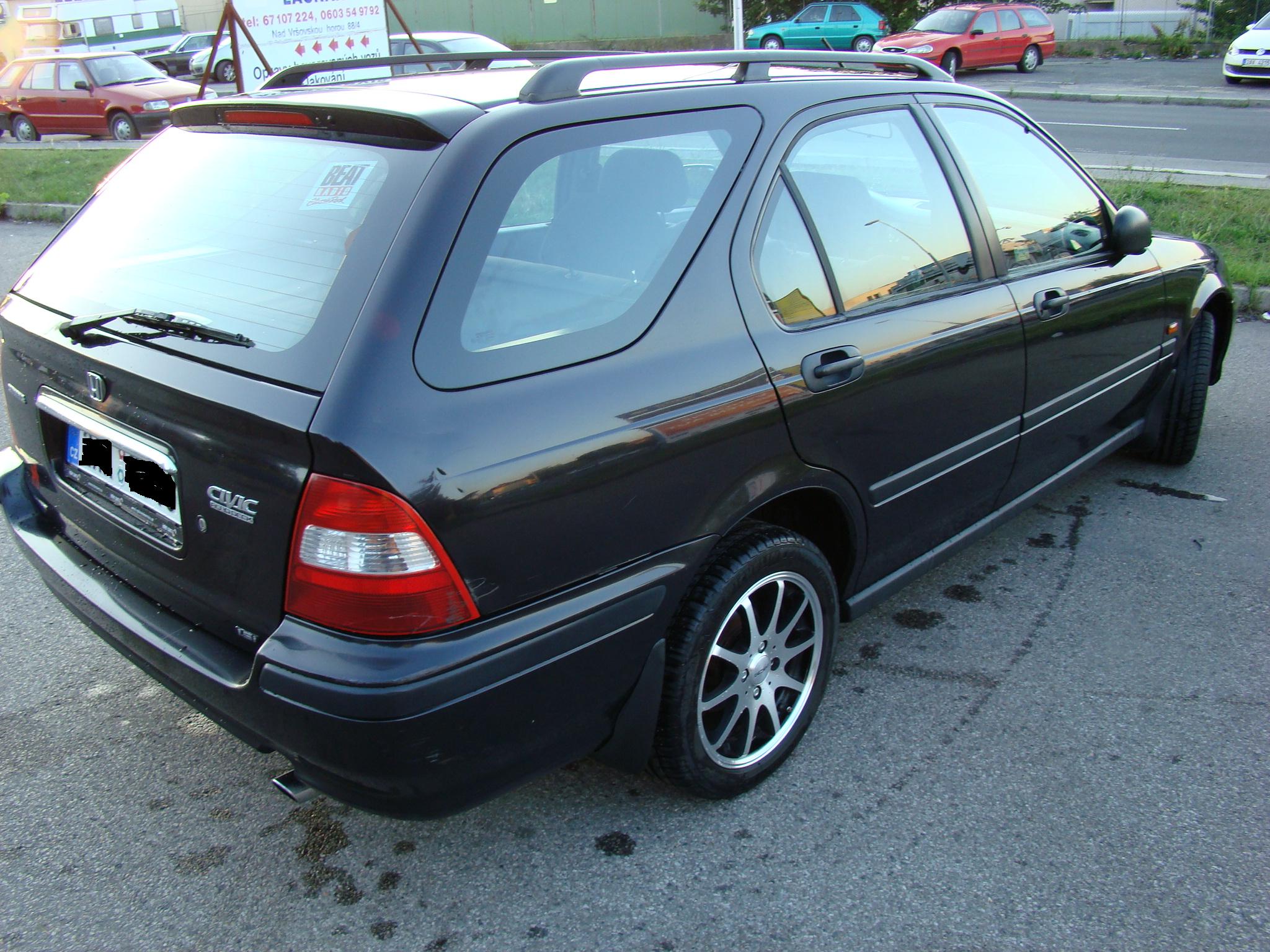 Prodám Civic Aerodeck 1.5VTEC, 84kW, r.v. 1998, najeto cca 209 000km, barva Black Pirates Pearl. Výbava:man. klima, ABS, imobilizér, centrál bez DO, přední mlhovky, P okna a zrcátka v elektrice, rádio na CD-CD nehraje, zámek řad. páky. Přidám litá kola Dezent 15" s pneumatikami Michelin-vzorek cca 3mm, sadu zimních pneumatik na plechových discích-pneumatiky Good Year se vzorkem cca 4mm, střešní nosič. Při 181 000km vyměněny všechny 4 tlumiče, P+Z kotouče a desky, velké silentbloky zadních ramen, čepy horních P ramen, manžety poloosy, MAP senzor, následně ložiska Z kol, hlavní brzdový válec, atd. K vozidlu přiložím vyplněnou servisní knížku+faktury k vyměněným ND, 2ks klíčů. Karoserie bez koroze pouze oděrky z pražského provozu (viz foto) šuk . STK a ME do 10/2012. EKO poplatek zaplacen-jsem 3. majitel. Vozidlo k vidění/projetí v Praze.Cena 49 000,-Kč. Kontakt: 724 251 025.