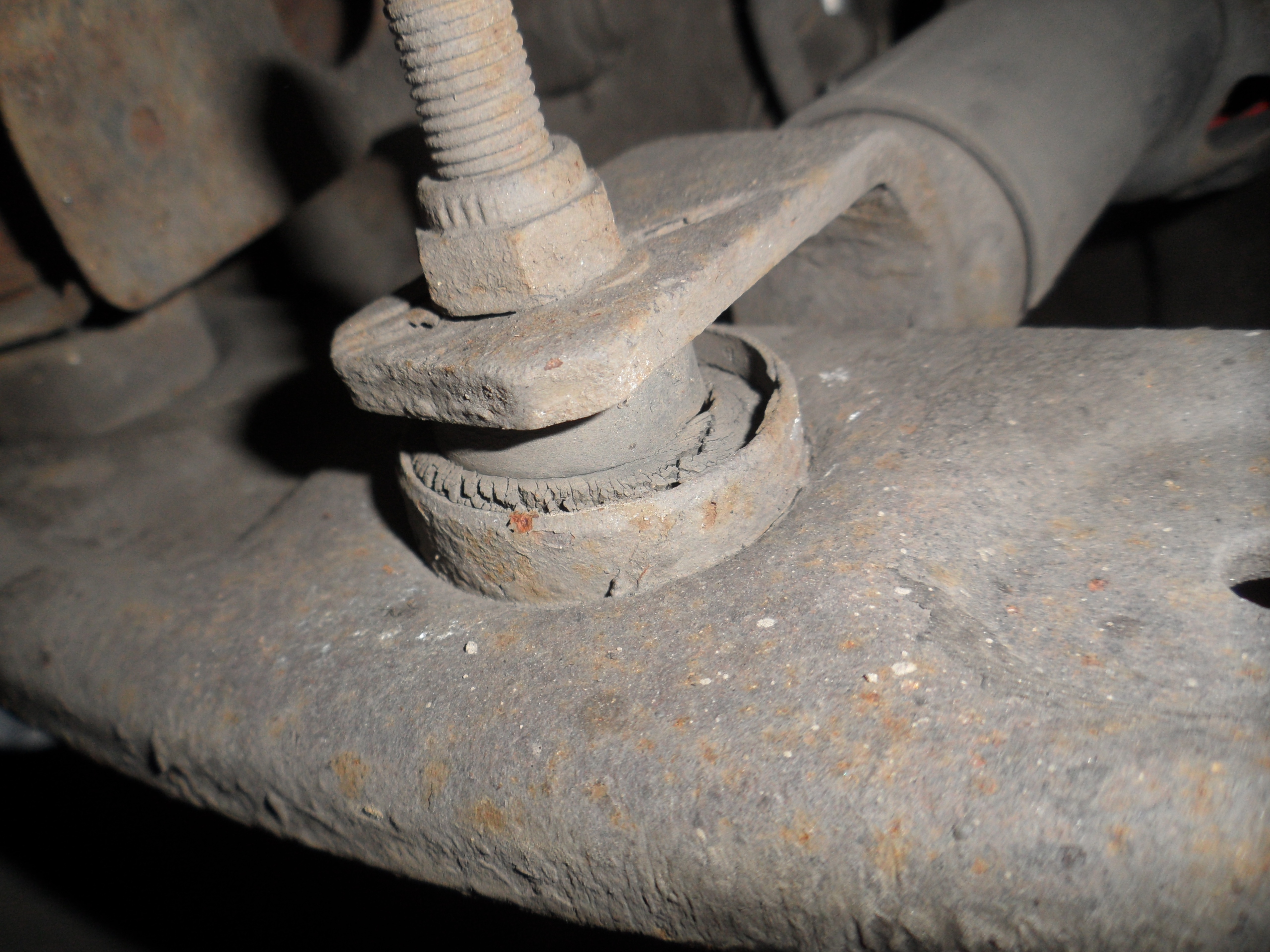 Každý kus jde jinak, já měl asi smůlu, že jsem většinou narazil na úplně zanedbané auta, na které se roky nesáhlo. Na fotce je vidět, že na to nebylo dlouho šáhnuto a ani bych se nedivil, kdyby musel ramena vyřezávat z nápravy. Dnes už to je jenom "lup, prásk, lup" a rameno je hotové.