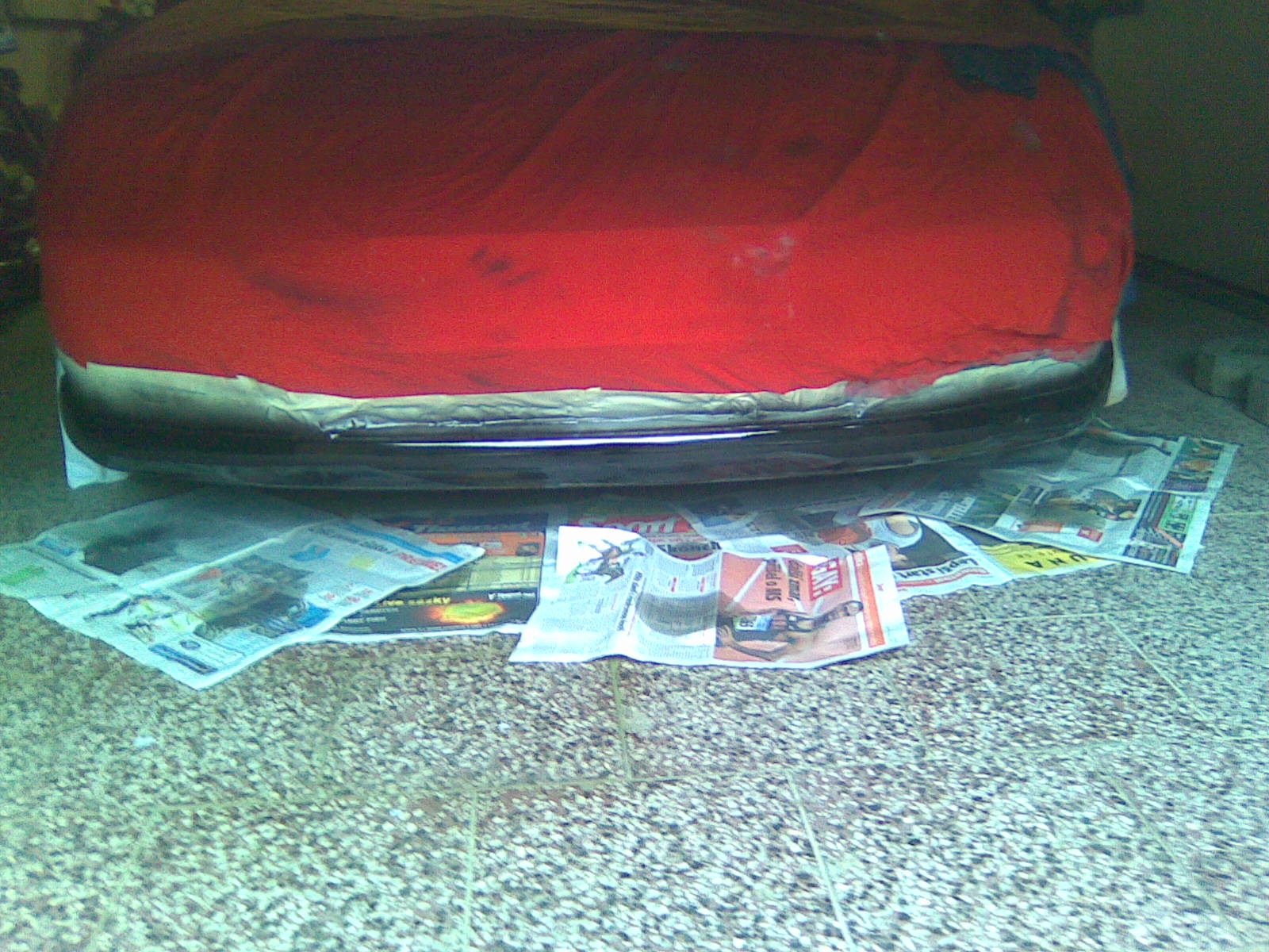 Nastal podzim 2011 a co se nestalo, sestřelil jsem lišku. Štvalo mě to, ale na druhou stránku, jsem mohl dopadnou hůř, alespon to byl podnět k opravě a nalakování nárazníku, vyčištění mlhovek a nalakování do šedozlaté barvy. a když už jsem byl u toho, tak jsem nalakoval i kapotu. Jelikož byla kapota dole, "tapec" ze spod kapoty byl hnusný, poškubaný, tak jsem se rozhodl pro pár hodin výtvarného kroužku a kreslilo se i zespod kapoty.