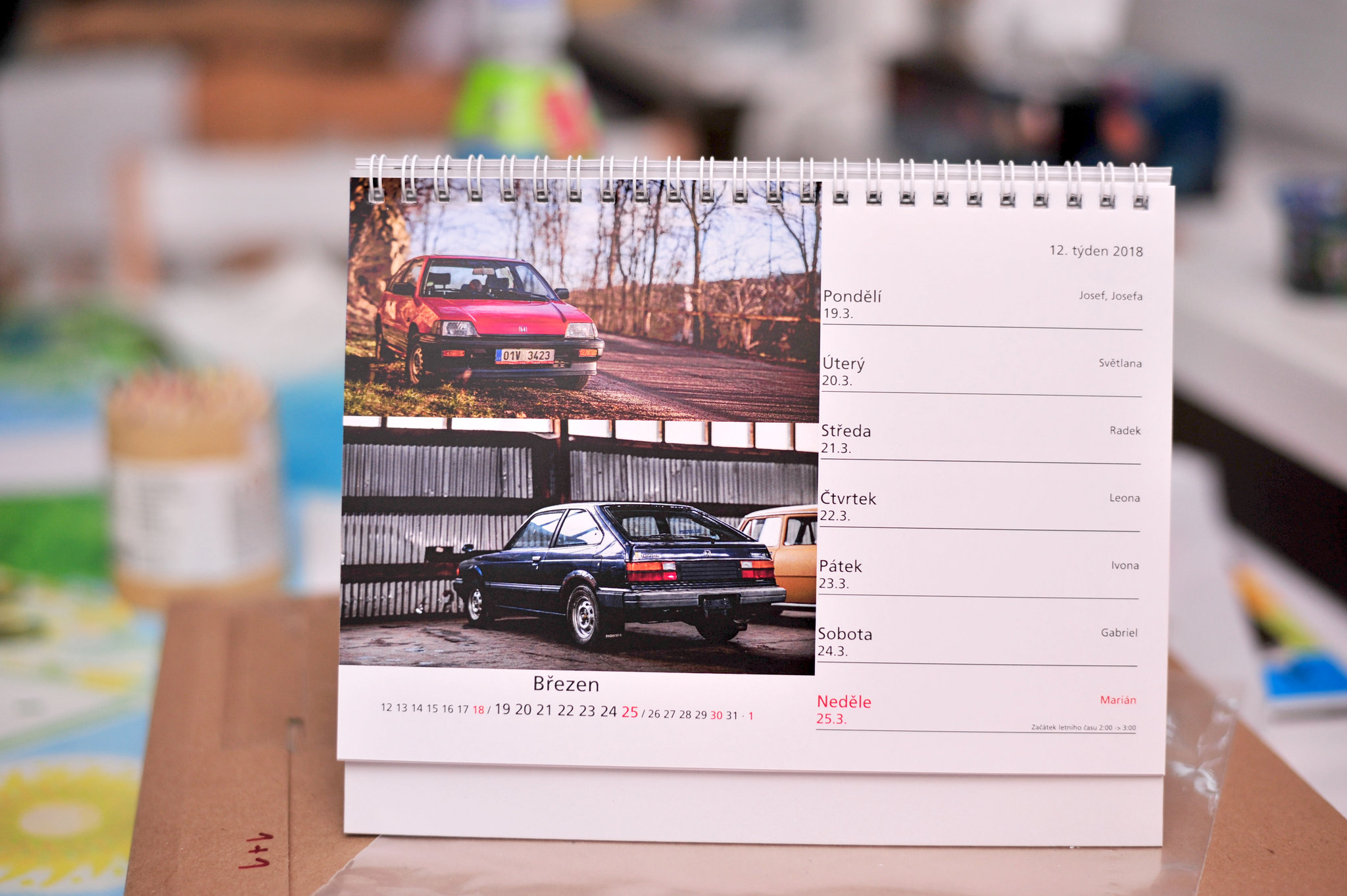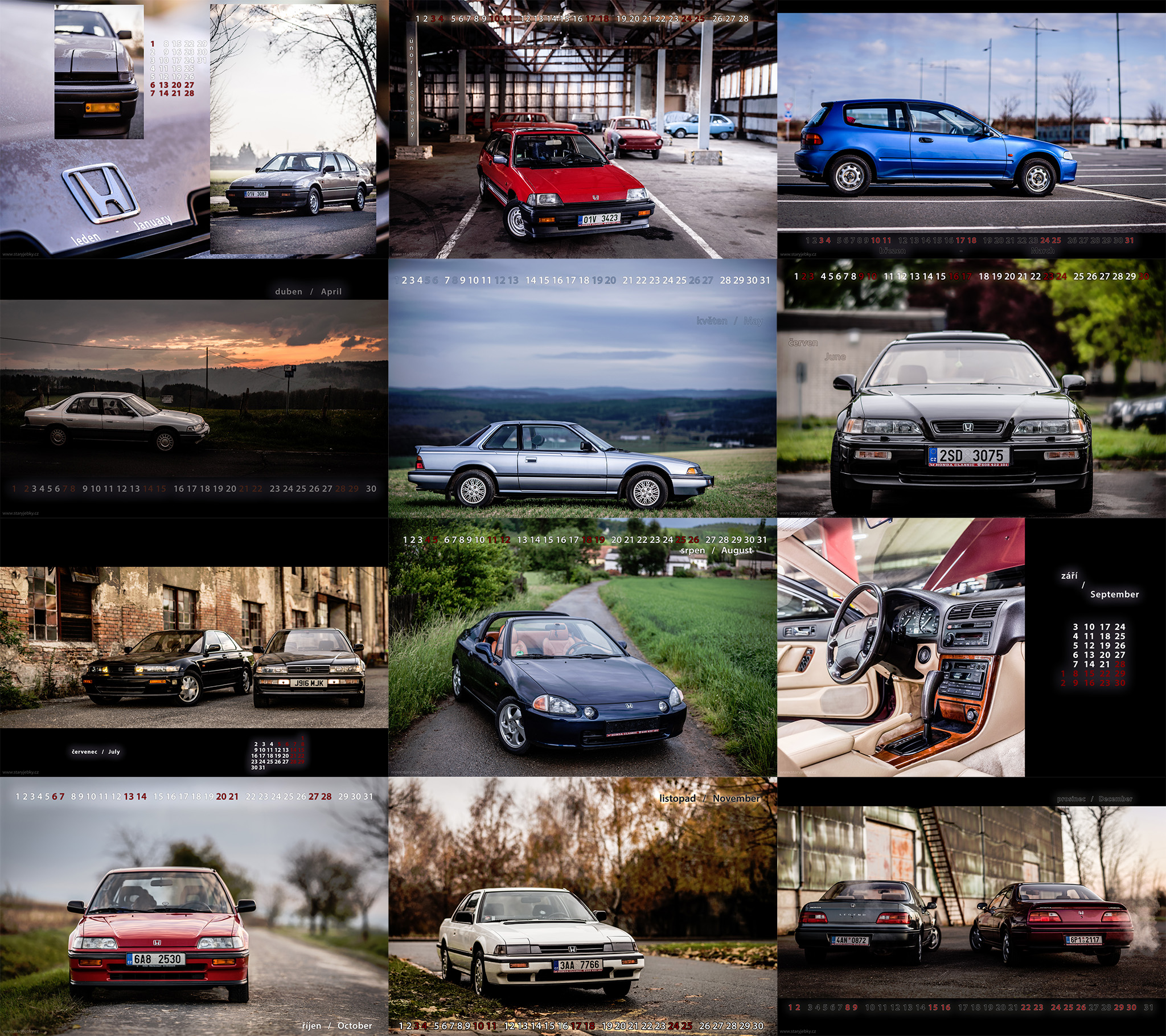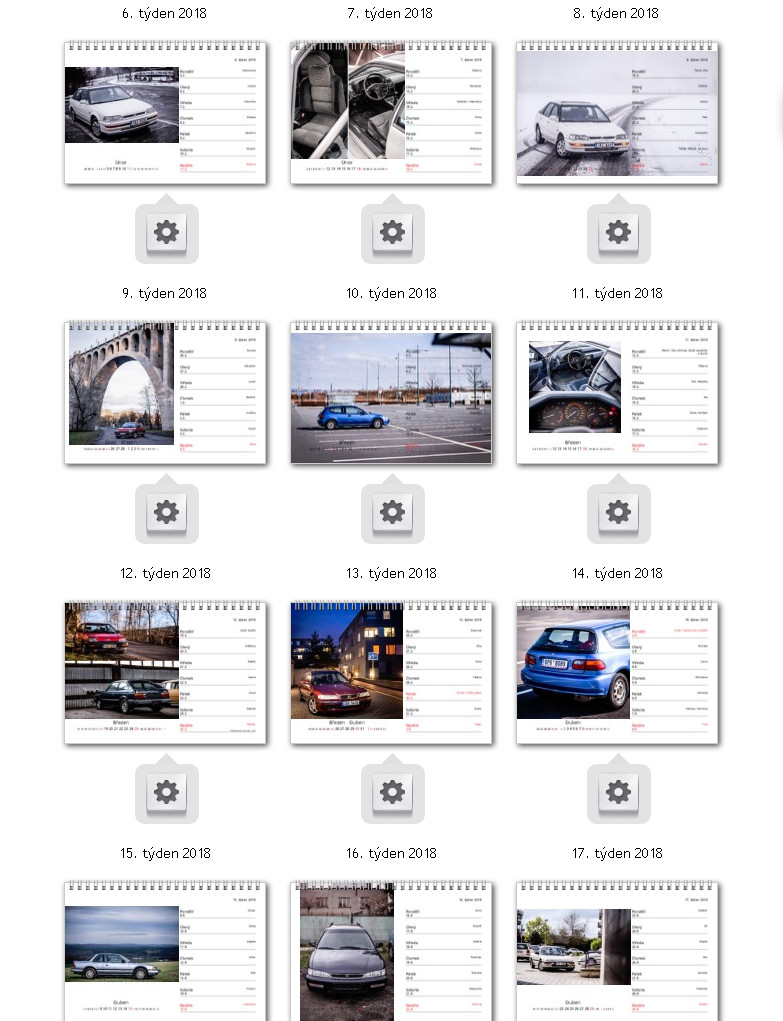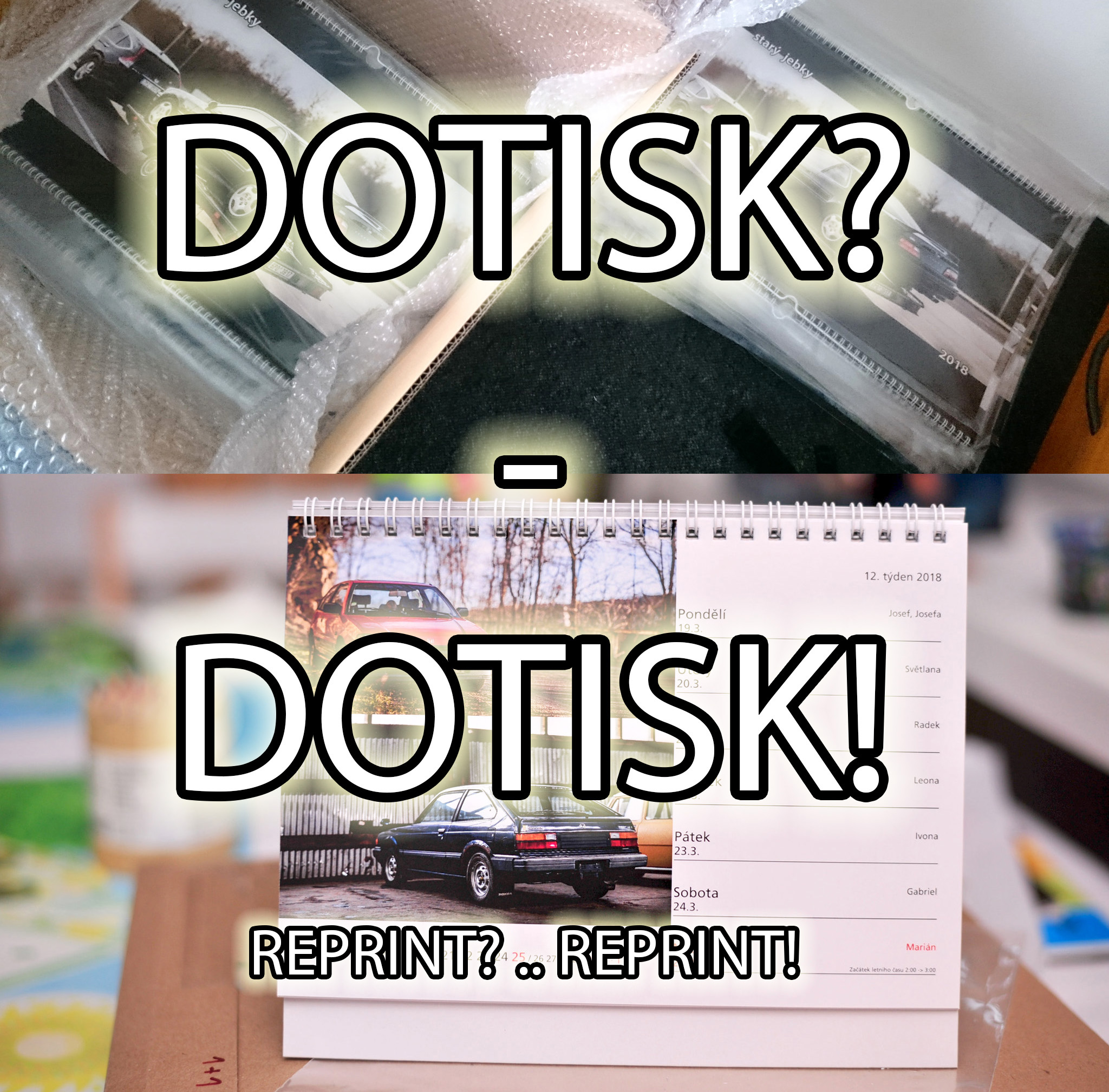 Bude tedy probíhat zítra, tedy v sobotu 9.12. od 15:00. Pravidla si možná pamatujete z předchozích ročníků, ale pro zopakování (a je pár drobných změn) - Postupně budu každou hodinu zveřejňovat obrázek, na kterém je zobrazeno všech 12 měsíců kalendáře "STARÝ JEBKY 2018". První měsíc začíná vlevo nahoře a jde se doprava a dolů, jako při čtení knížky. Vaším úkolem bude uhádnout, co je na které té dané fotce zobrazeno za vůz. Budu tedy chtít, abyste mi vyjmenovali všech 12 vozů. Budu chtít vždycky typ vozu, číslo generace a případně ještě podtyp, pokud ten daný vůz takové označení má. Například - "Civic 3G Shuttle". Pokud je v jednom měsíci aut víc, tom případě mi bude stačit jméno a generace jen jednoho vozu - kteréhokoliv na té fotce. Samozřejmě pokud někdo napíše názvy a generace všech vozů, tak může.. Velmi šťastný Problém ovšem bude bude v tom, že obrázek bude poměrně značně rozmazaný. No a každou další hodinu bude rozmazaný o něco méně Mrk Kdo mi první napíše správný seznam vozů, vyhrává.