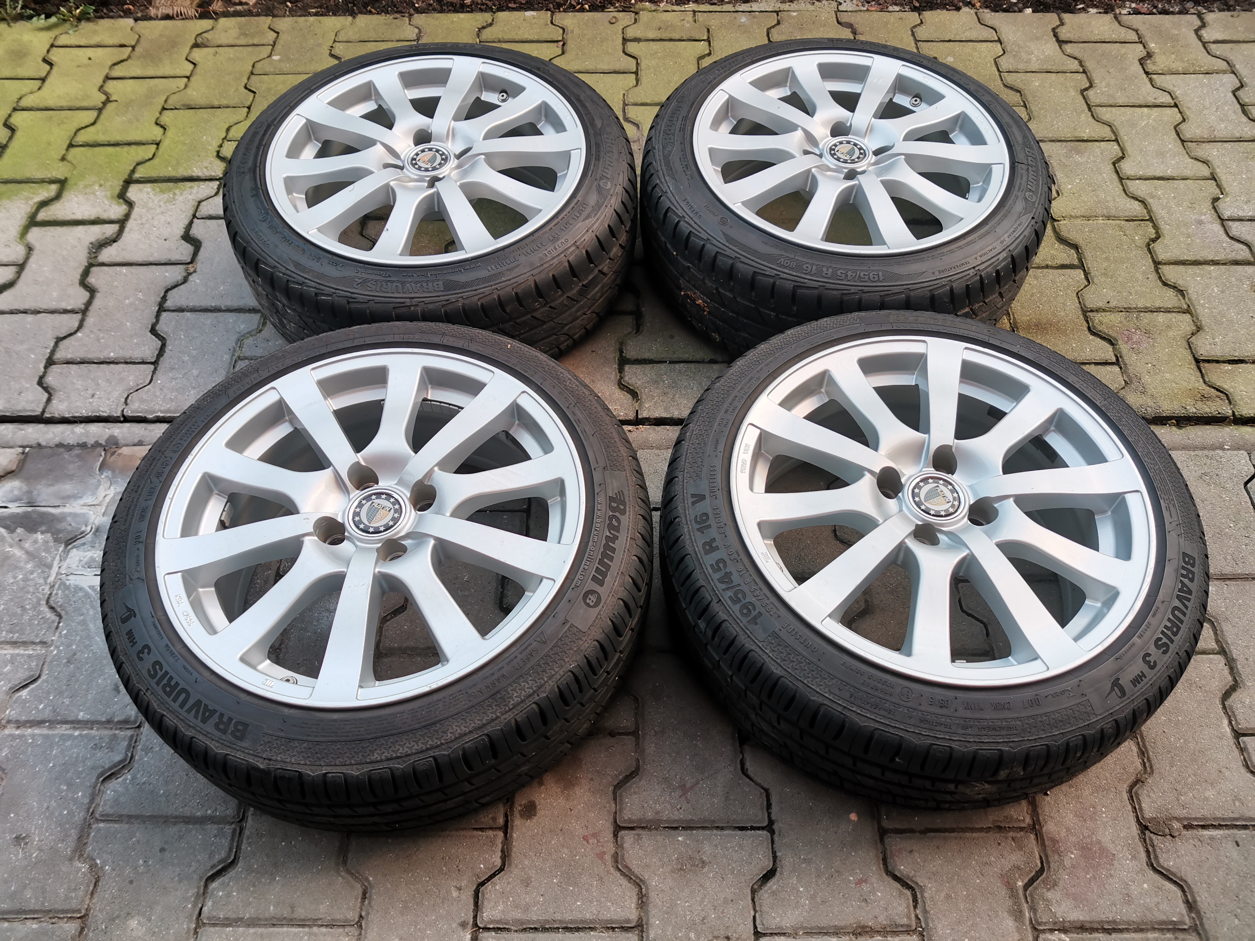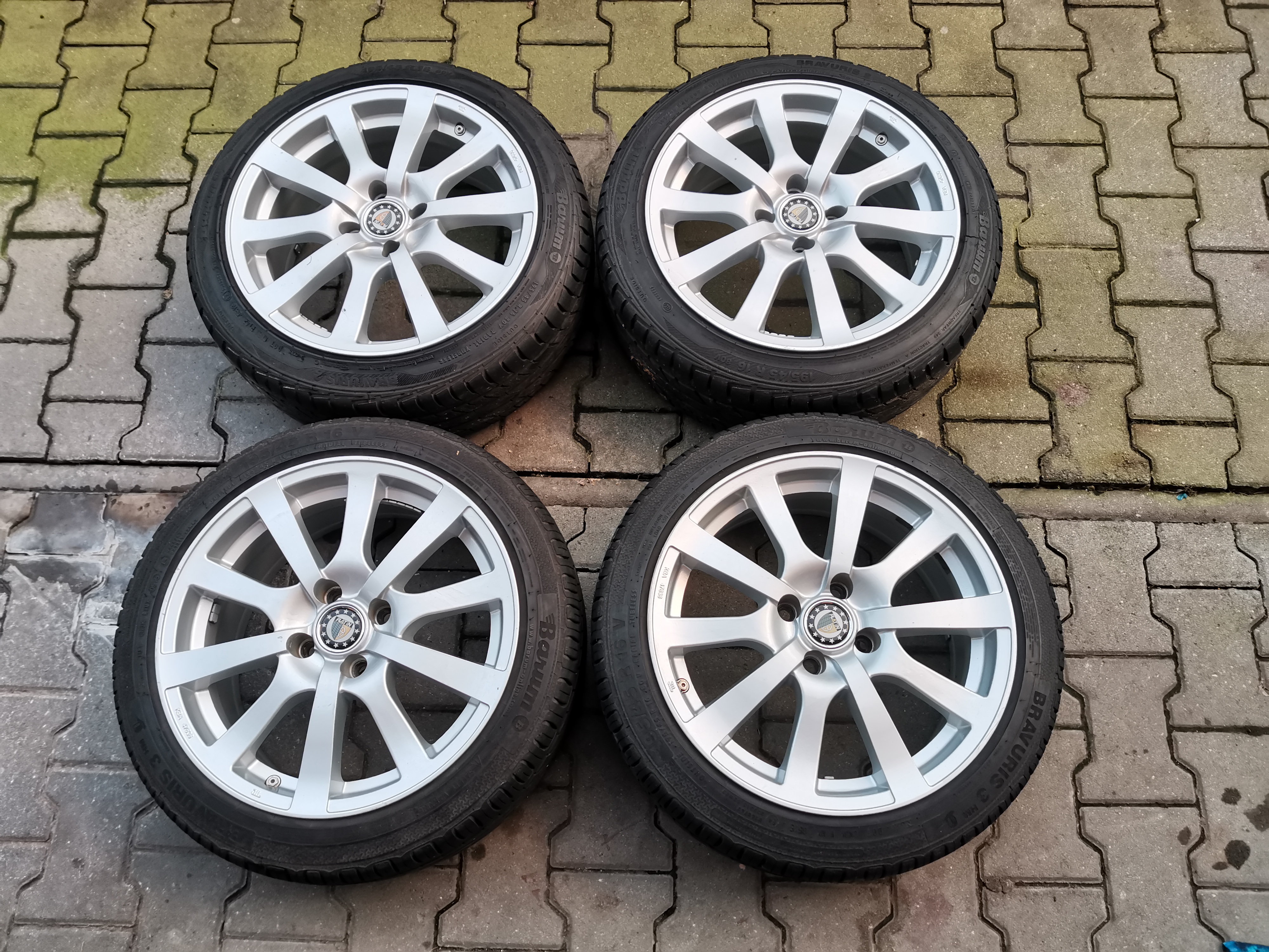 Nabízím kola z mého bývalého C5g. Jsou to kola německé značky Platin, kola jsou pevná, atestovaná, rozměr je 7x16, ET35, rozteč 4x100 , středová dira 63,4 mm a středící kroužky 56,1 mm. Jsou tam skryté ventilky. Obuté jsou 2ks pneu Barum Bravuris 2 a 2ks Barum Bravuris 3,oboje rozměr 195/45-16, vzorek 7 mm. Kola jezdila pořádně tak 2 sezóny. Mají certifikaci KBA,dá se k nim sehnat typový list, měl jsem je zapsaná v TP. Cena 8000,-