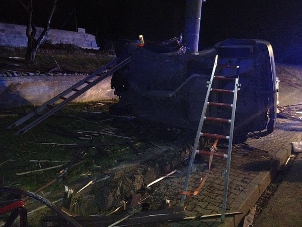 Všichni přežili. Jeli v tom kamaradi zborili 3.5 pole plotu a zastavili se o betonovy sloup