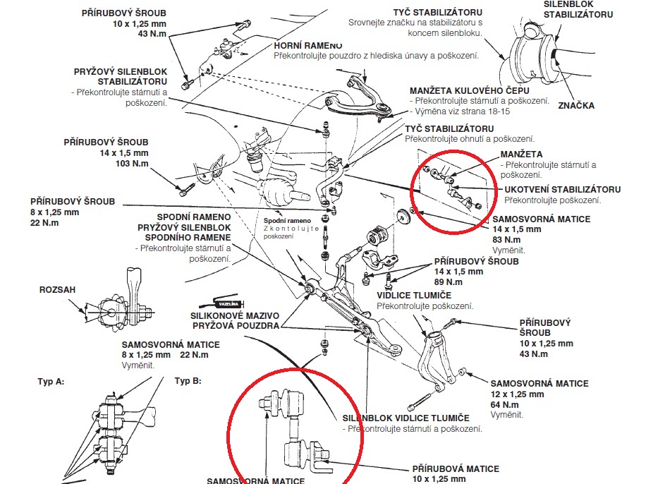 | Predná náprava - Horný a spodný zvislý čap |