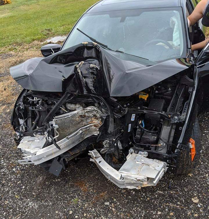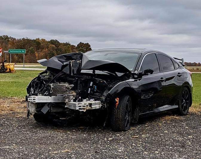 rána skoro ve 100km/h (60mph) do stromu zmatenej