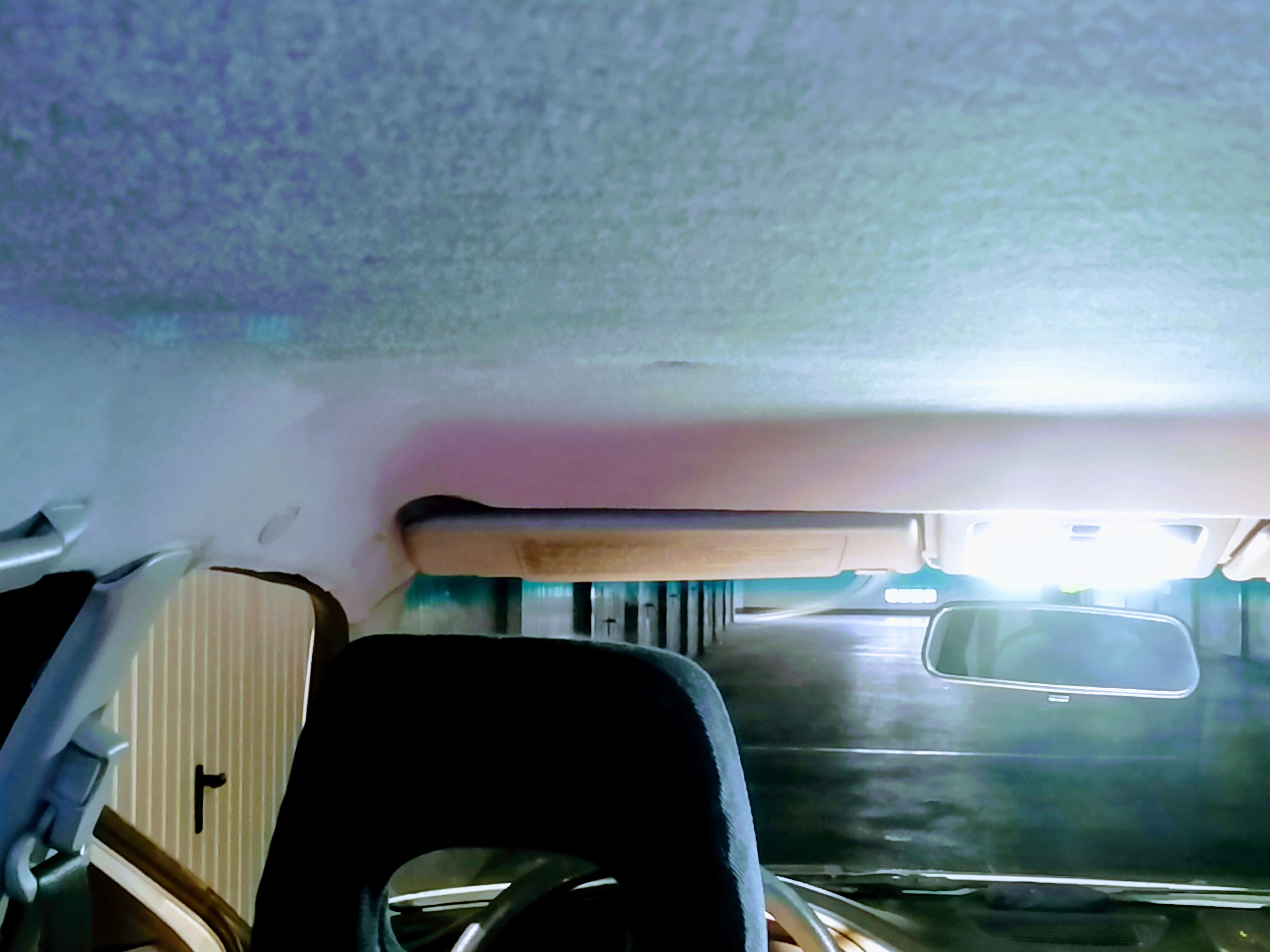 Já jsem to kdysi vyřešil tak že jsem sundal stropnici. Sundal tu látku. Wapkou odstranil zbytky molitanu nebo co to bylo. Nastříkal černým sprejem. Vypadalo to dobře a stálo mě to dva spreje a jedno odpoledne