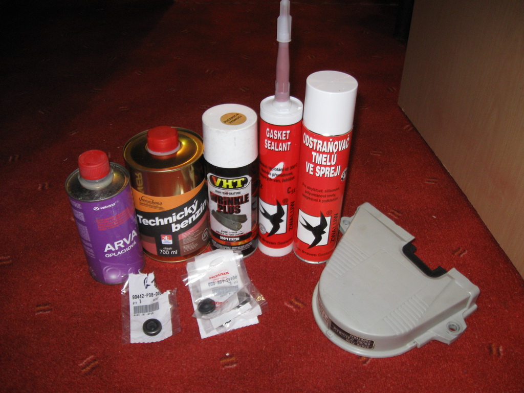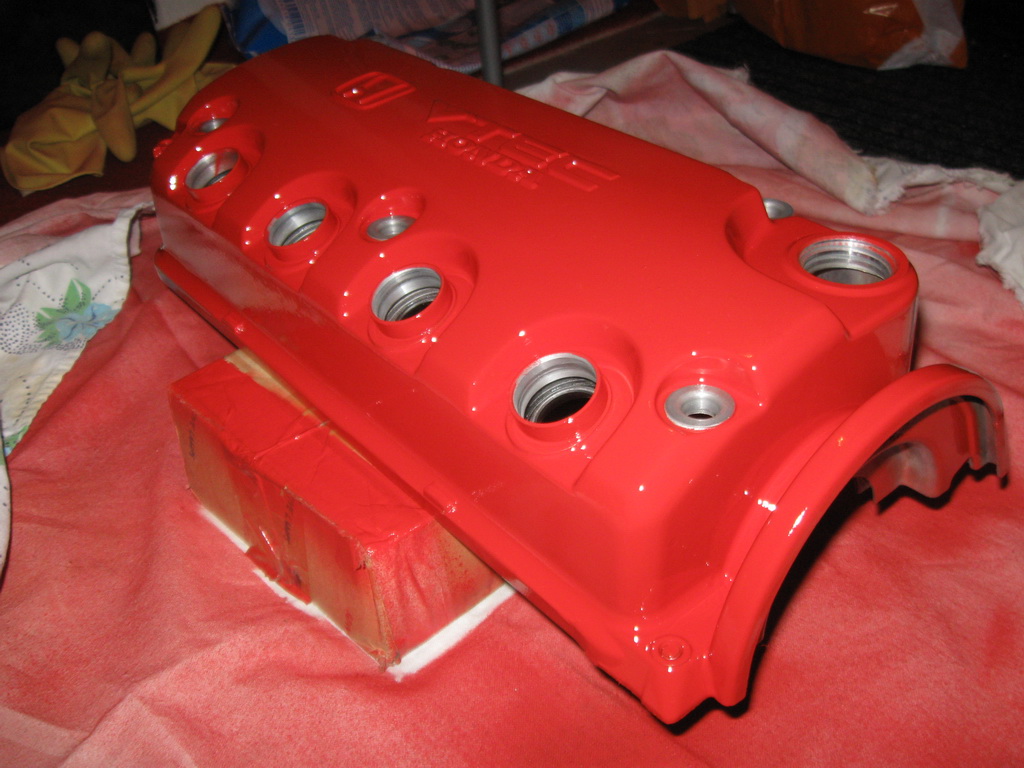 Tak mezi jiným jsem přes noc zvládl udělat lak víka. K tomu jsem koupil rovnou i originální podložky a gumičky pod šrouby ventil. víka. Dle fotek pochopíte, proč stojí 5ks gumiček Kč 566,- bez DPH!!! Jinak vše jsem sehnal díky bordelovi - gumičky, PepaCRXovi a LucasFreeMatchovi "Wrinkle" spray a hlavně Wheelmanovi - ventil.víko a kryt rozvodů.
