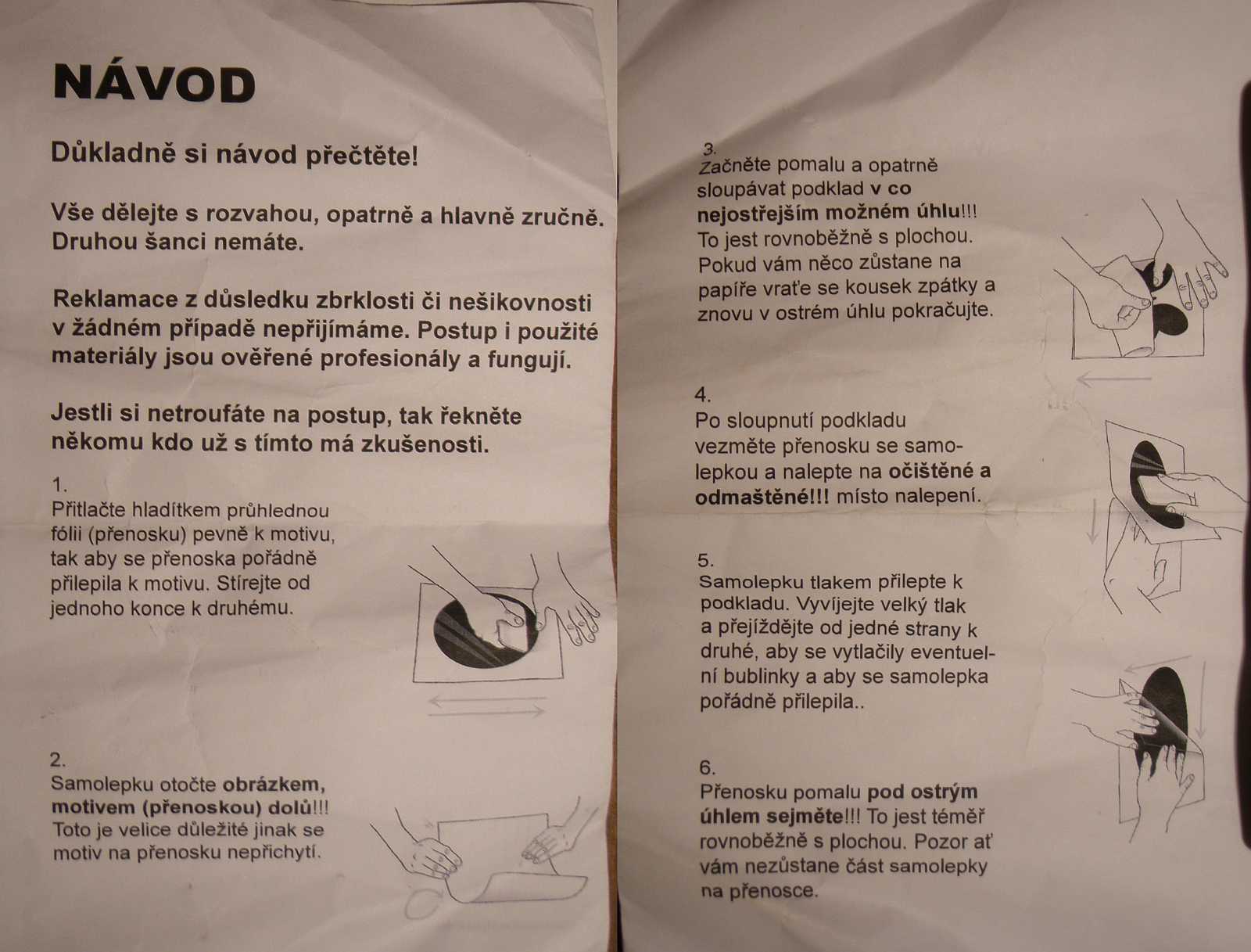 2. pomalu rozevírej přenosku (to je ta fólie) sundávej tu spodní fólii (s těma čtverečkama) musíš se ale předtím přesvědčit, zda nápis zcela a kompletně sedí na vrchní průhledné fólii.