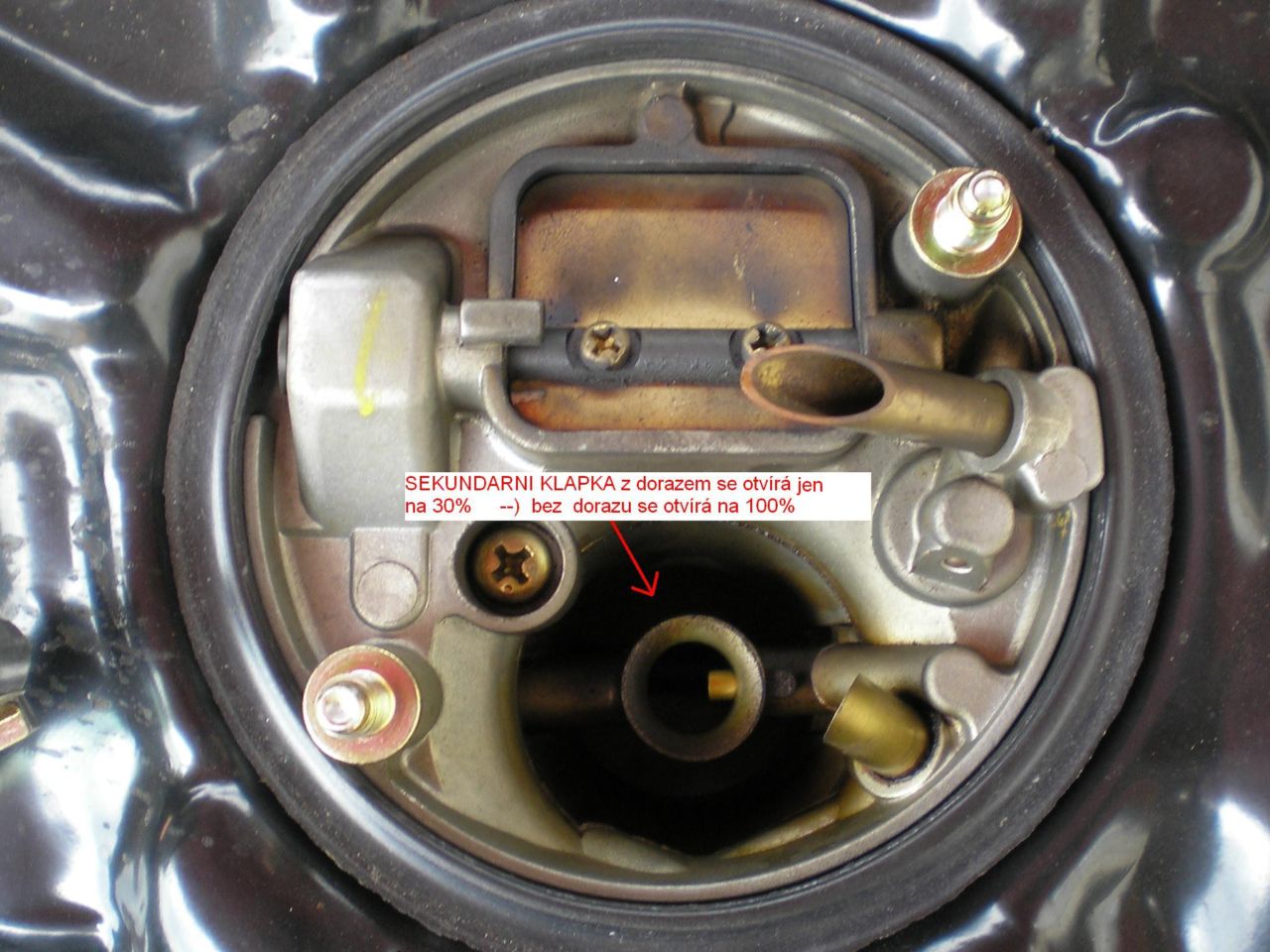 - Další možnost je odšroubovat ten doraz druhé komory karbece