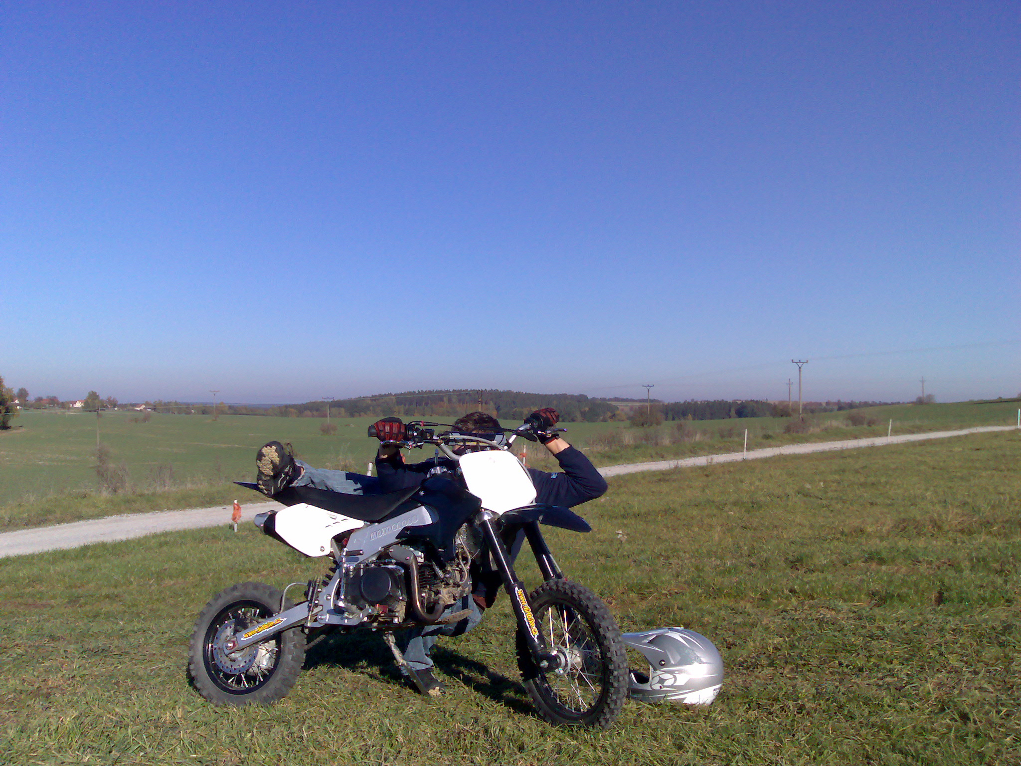 Ninja: osobne mam minicross..a eeehm..vymlel jsem se pri maximalce kdyz jsem si dal jump a odnesla to zimni bunda, svetr, triko a jeste jsem mel sedrene bricho.. a pak vatove kalhoty..dneska uz jsem rozumnejsi a litam s chranicema, opatrne a spis to mam na jizdu do garaze nez kravnuti..Jak jsi napsal - Mam se rad je to dobrý
