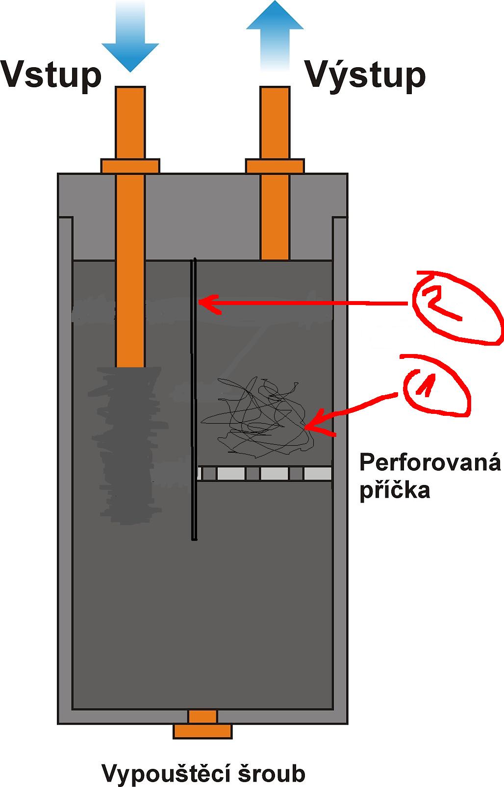 myslim ze zas tak uplne jedno to neni. Dratenku bych dal pred ten vystup podle tveho prvniho obrazku. Kdyz bude na vstupu tak budes vystupem nasavat olejove vypary z toho jezirka srazeneho v nadobce...