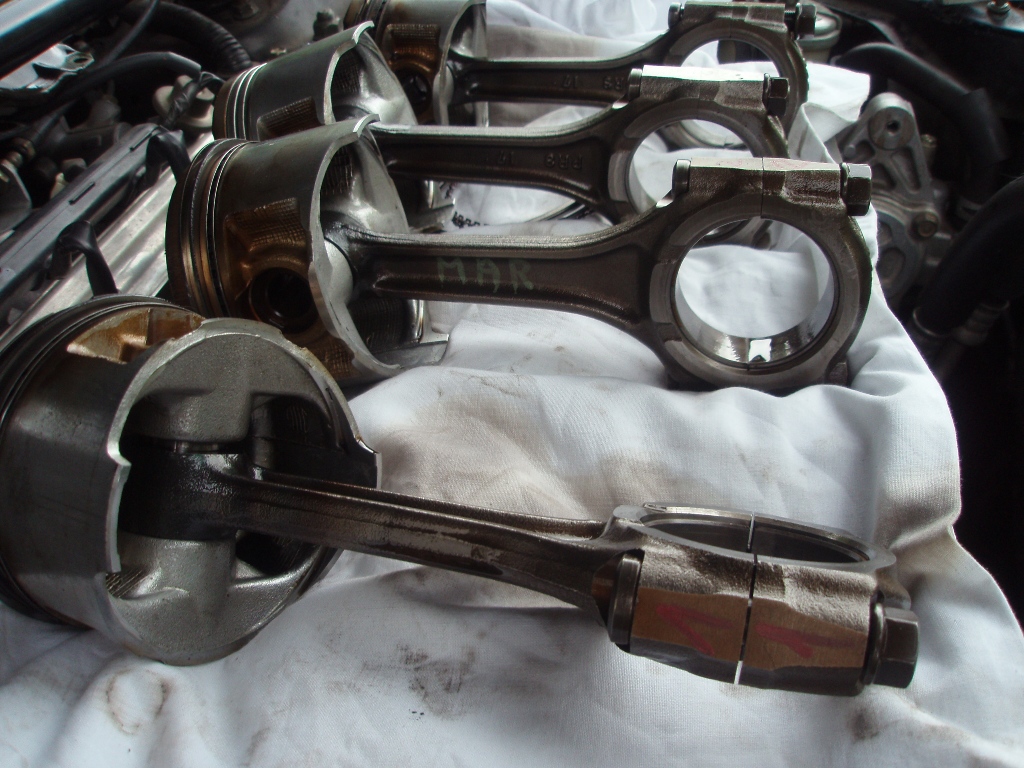 Dnes jsem vyndal ojnice a písty, ojniční pánve jsou dle mého dvorního poradce a mechanika jsou v pořádku...