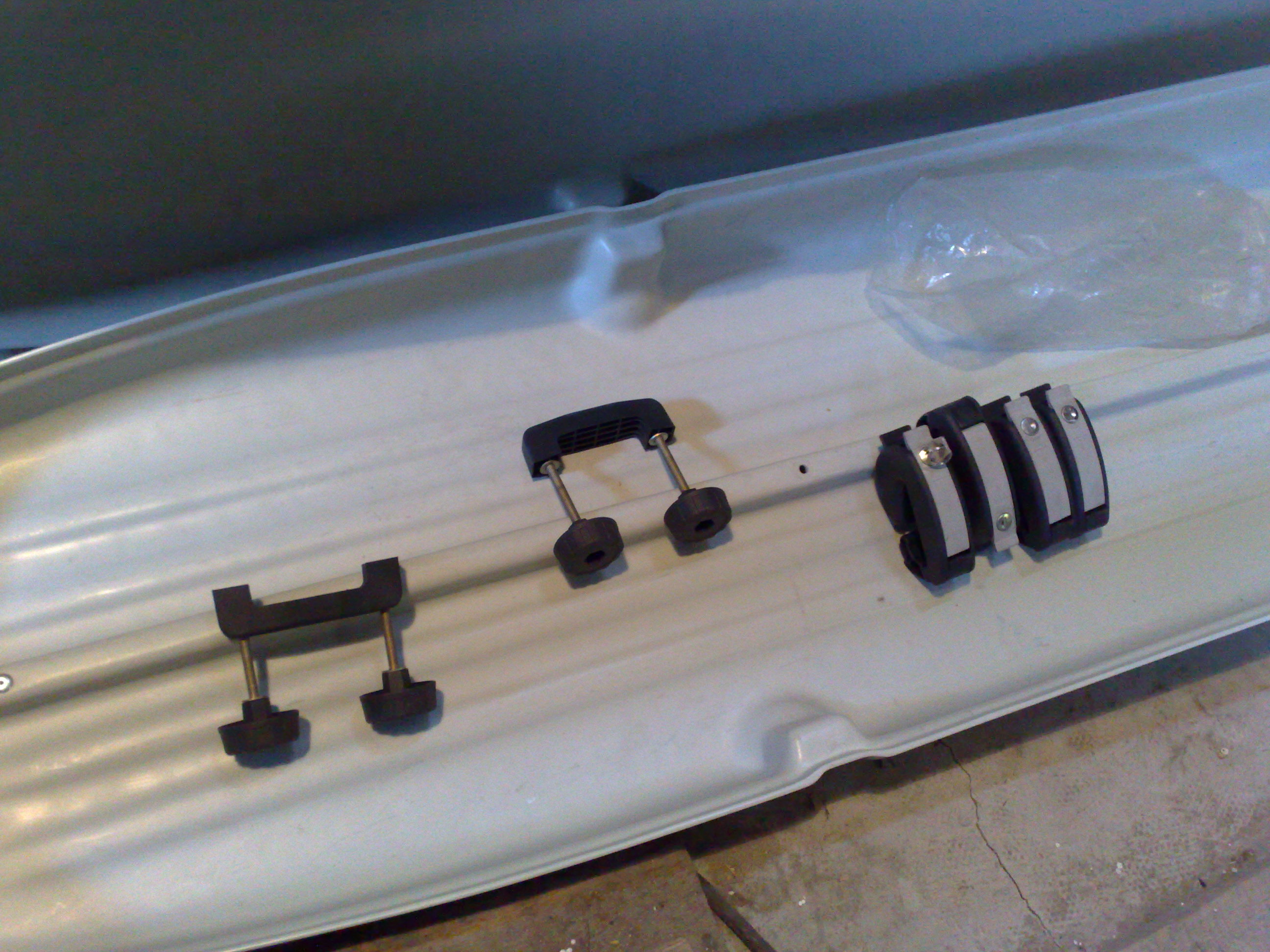 2) rakev Automaxi, 4 samostatne zamky, bezpantove otevirani, v podstate nepouzita .. Je o neco delsi a nizsi nez Thule