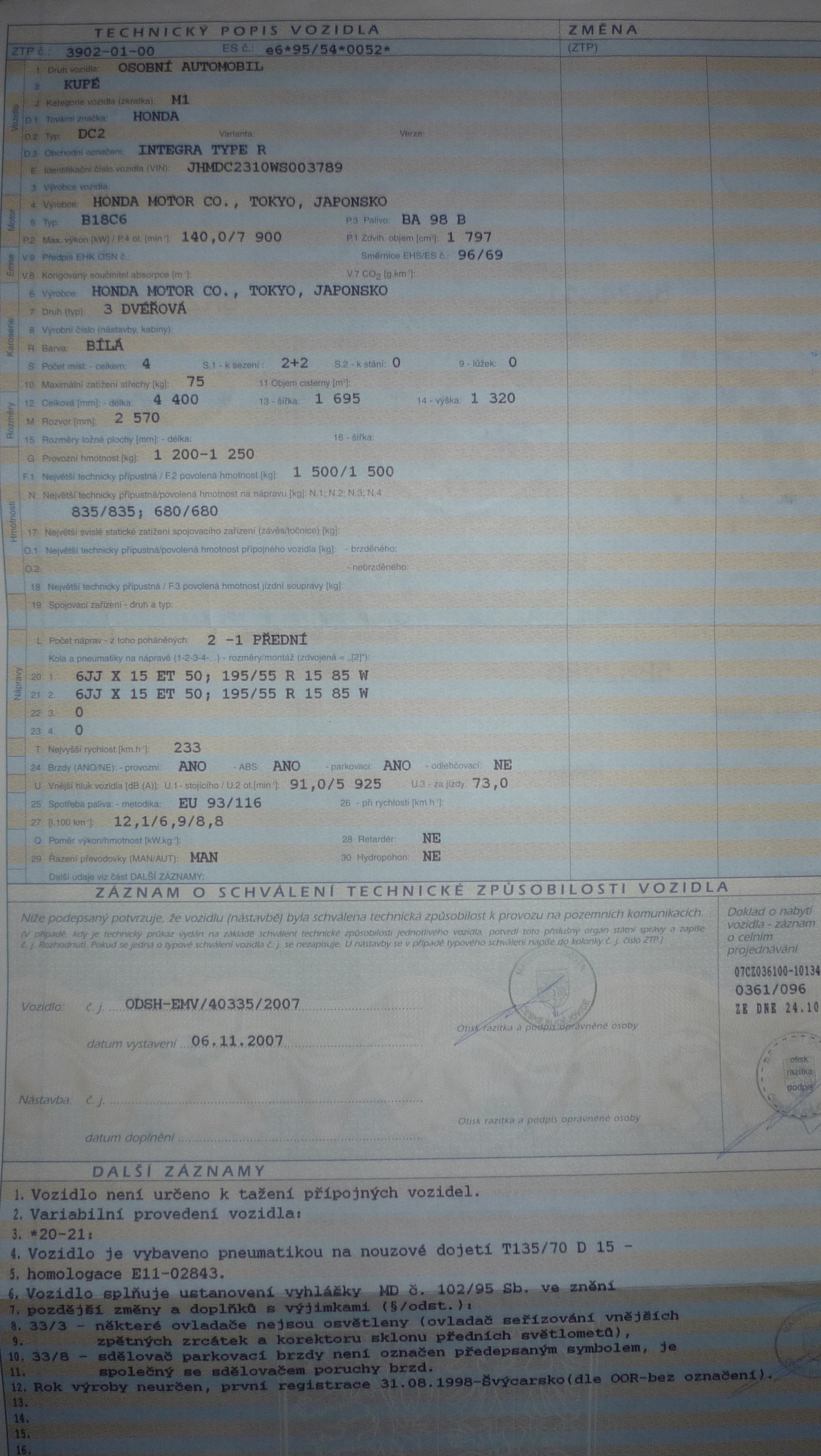 jak, sak ja jediny mam napsane jako obchodni oznaceni: INTEGRA TYPE R ... ostatni maj pouze "obcejnou" ne-TypeR INTEGRA Je to tam.