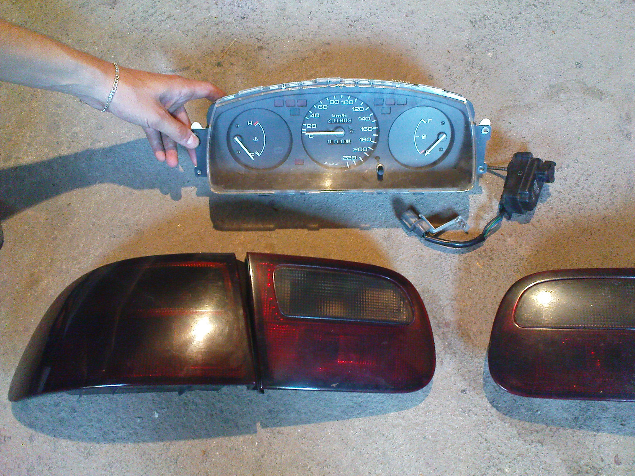 zadní tuningové lampy - jedna je prasklá
