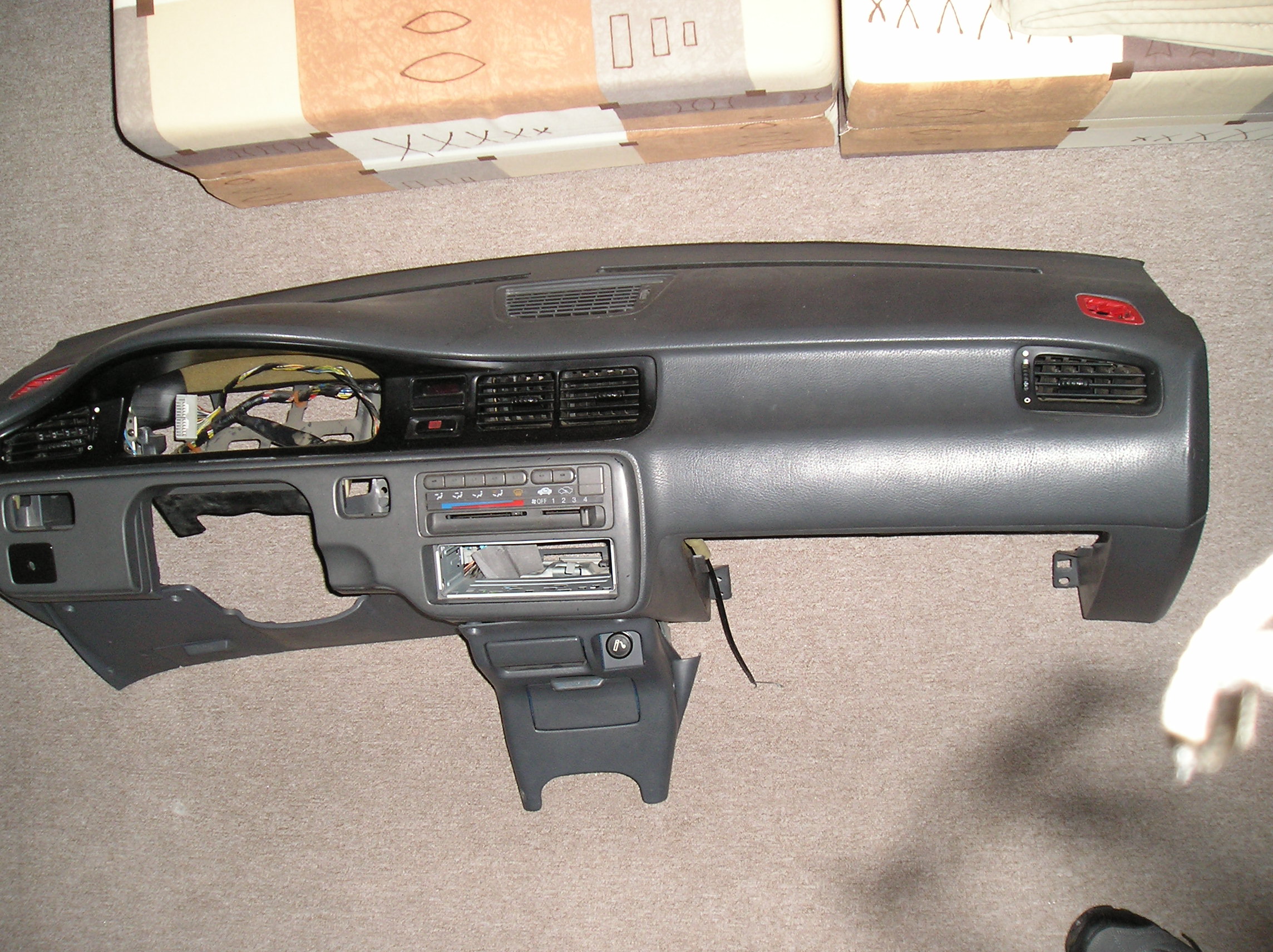 Praveze som daval podtext ku kazdej foto ked som to priadaval, ze co to je a z coho to je, tak neviem kde sa stala chyba. Asi to sem v kocke rozpisem, to bude lepsie. tak napr. tie zvody su z B16ky, riadiacka je z motora D15B2, spataky su z C5G hatch., sanie je z B16, tie pruziny su z EG6, chladic je z motora D15B2, to ovladanie kurenia je z Del sol, tie trubky klimy a ten vymenik je z C5G, ale tie trubky tam nie su vsetky, palubka aj dvere su z klasiky C5G, ten kufor je z EG6ky... Úsměv