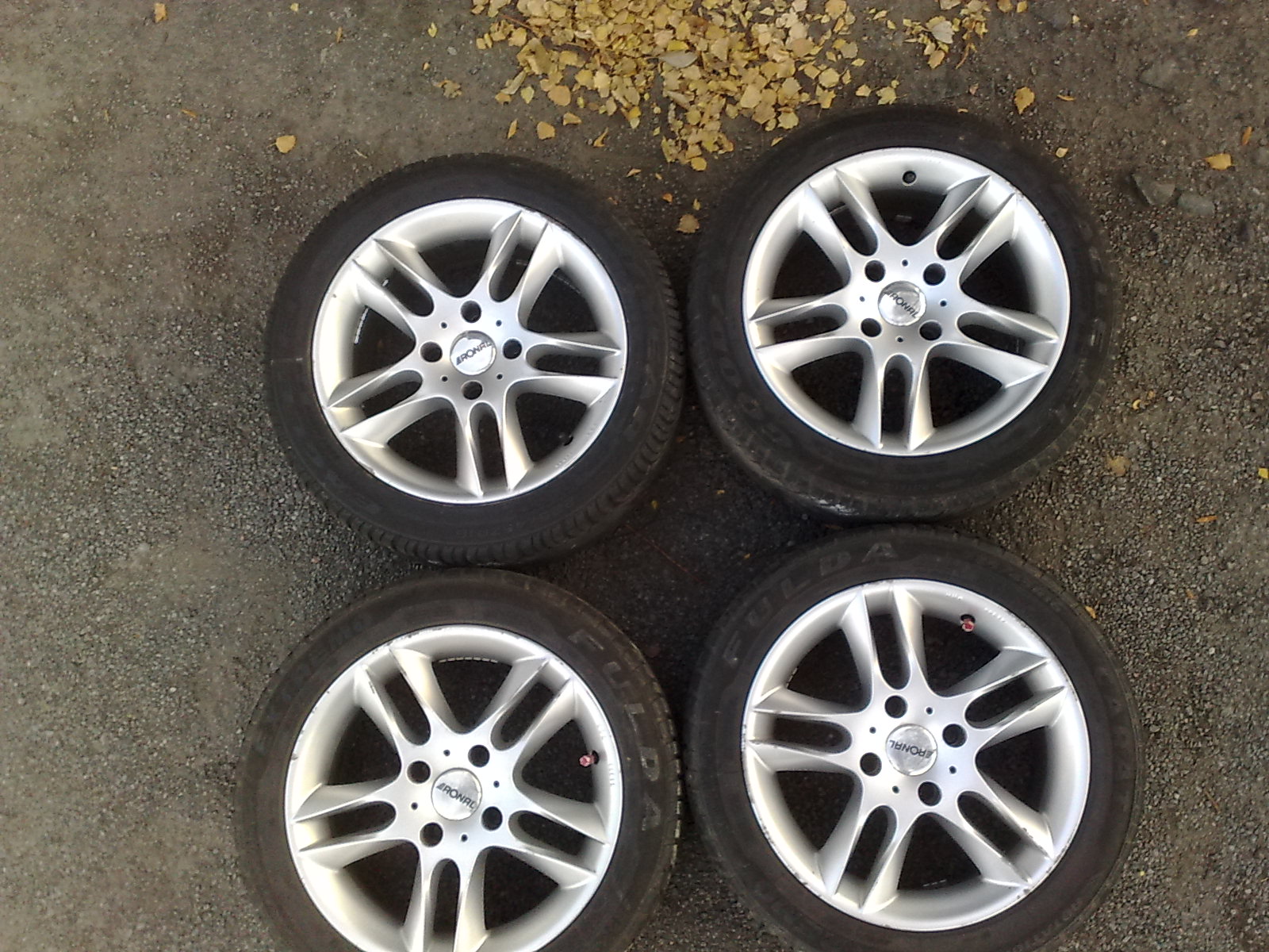 Prodám tyto Alu kola RONAL 16´´ včetně pneu!!! Rozměry 225/45/16. Měl jsem je na Honda prelude 4g. Rozteč 4*114,3. Jsou na nich pneu 80%. Přední Good Year Eagle F1(šípový vzorek) a na zadních Fulda Carrat. Kola jsou vyvážená, nehází! Drobné oděrky. Jen za tyto pneu jsem dal 7500kč, s čímž nepočítám že se mi vrátí. Jenže auto už nemám a kola mi leží už 5 měsíců v garáži, tak se jich potřebuji zbavit. Super cena 5500kč! Možná domluva!!