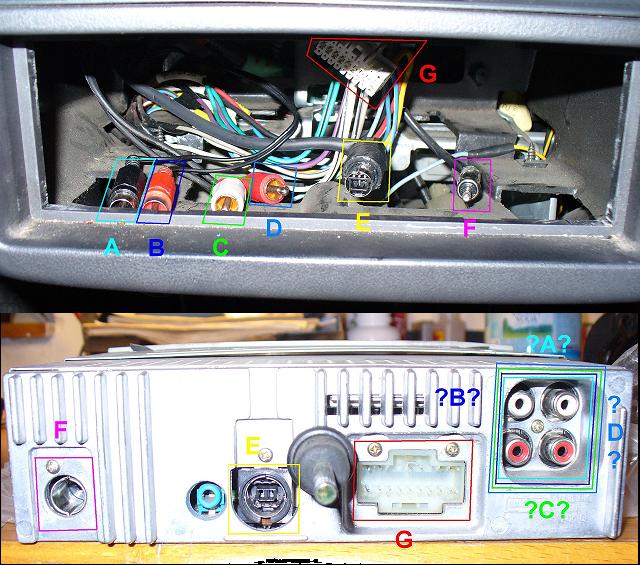 Podle mě, jsou ještě i dva z těch ABCD k CD měniči. Aspoň mě mezi měničem a rádiem vedlo E a C,D.