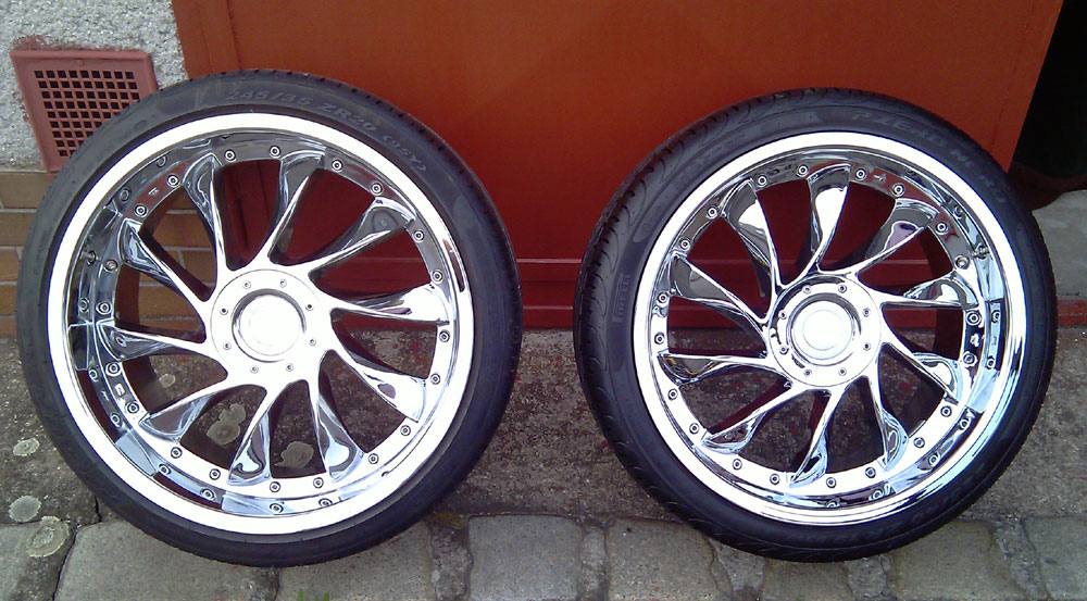 Prodam chromova(galvanicky chrom zadny sprej:-) ) alu kola od Firmy ACE typ AVIATOR roztec 5x114,3 (vsechna japonska auta-kdyby jste chteli jinou roztec tak podlozkdy a nebo srouby s plovouci hlavou). jsou jete polovinu minuleho roku jen za hezkeho pocasi. predni kola 2x 8,5"x19" ET40 a zadni kola 2x 9,5"x20"ET38. pneu Pirreli PZero Nero 2x225/40R19 cca 7mm a dale ty same gumy jen 245/35 R20 s 5mm vzorkem. puvodni cena kol pres 88 TISIC KORUN. kola rovna nenakopana naposkrabana. mozno vyzkouset. na komicke navrhy nereaguji.cena 42000- pri rychlem jednani sleva jista.dohoda