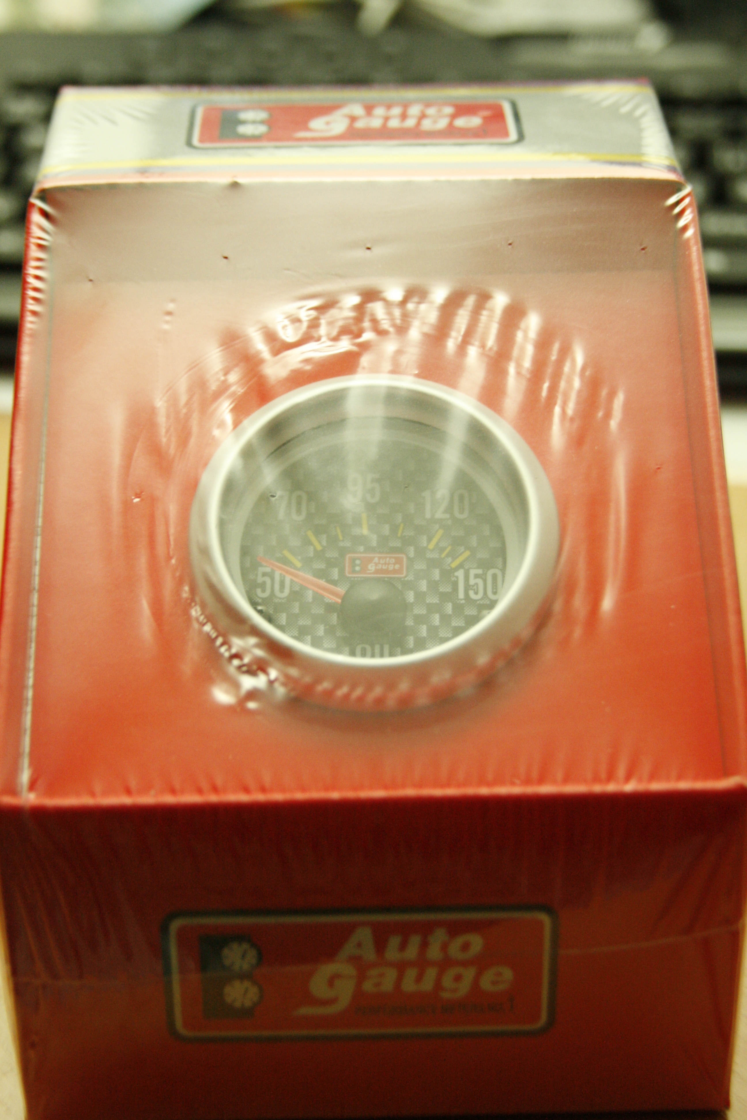 9. Budík na teplotu oleje - bílý podklad, modré podsvícení, cena nevím... Plácnu 300.-Kč