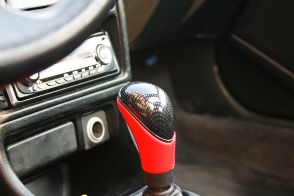 6. Hlavice řadící páky Raid červená kůže/carbon 200,- Kč
