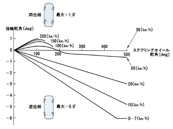 Do 30km/h se kola nataceji jen na opacnou stranu. Ve 30km/h se nenataci vubec. Mezi 30km/h a 90km/h se pri malych uhlech otoceni volantu nataci nejdriv stejne jako predni (napr zmena jizdniho pruhu) a pri velkych hodnotach otoceni volantu zase na opacnou stranu (zatacka, manevrovani). Od 90km/h se nataci pouze na stejnou stranu jako predni. je to dobrý