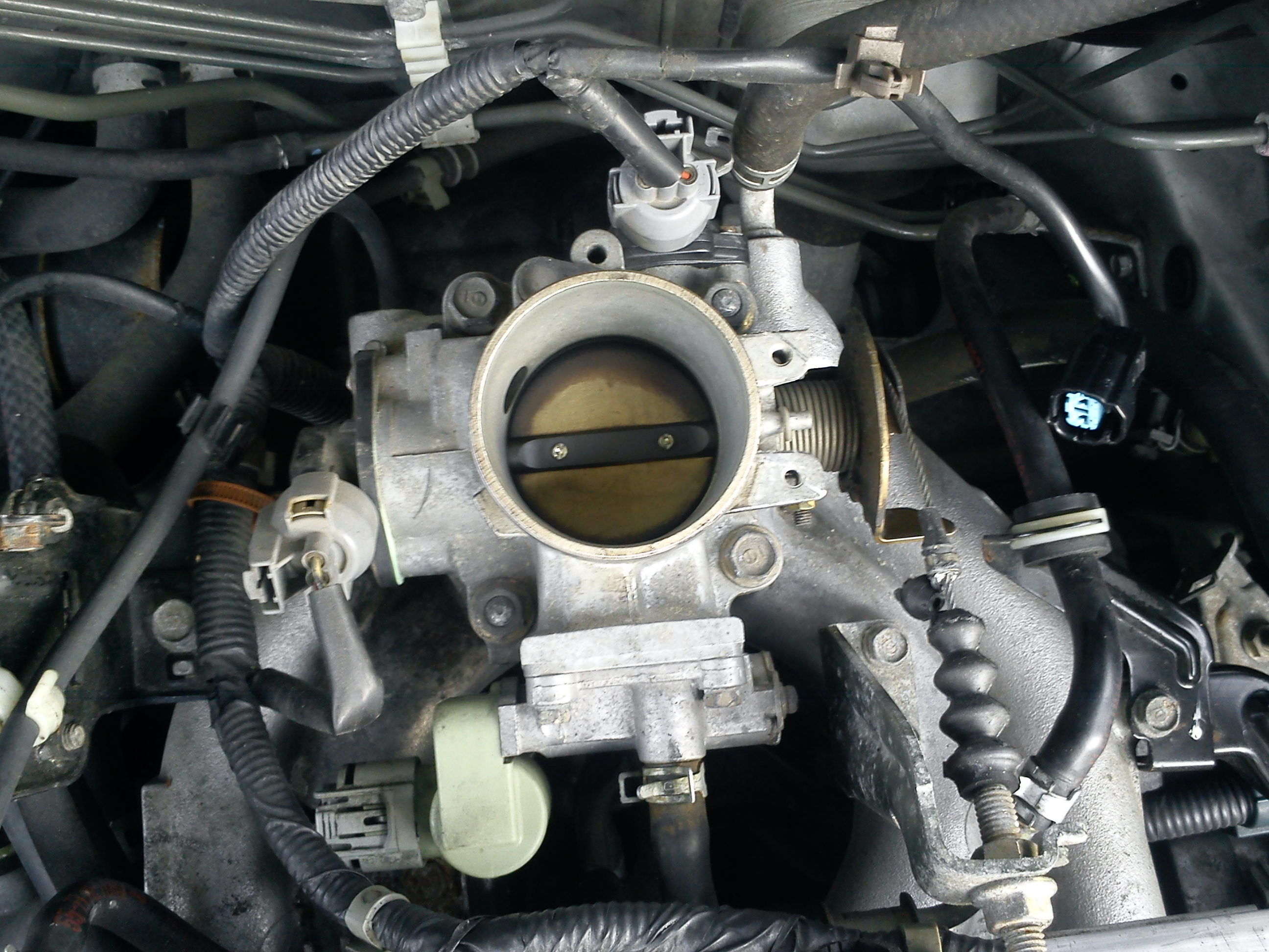 nalevo snímač, ale v tvém případě dole IACV (ovládaný ecu) - kde si vzal dvě díry? Velmi šťastný