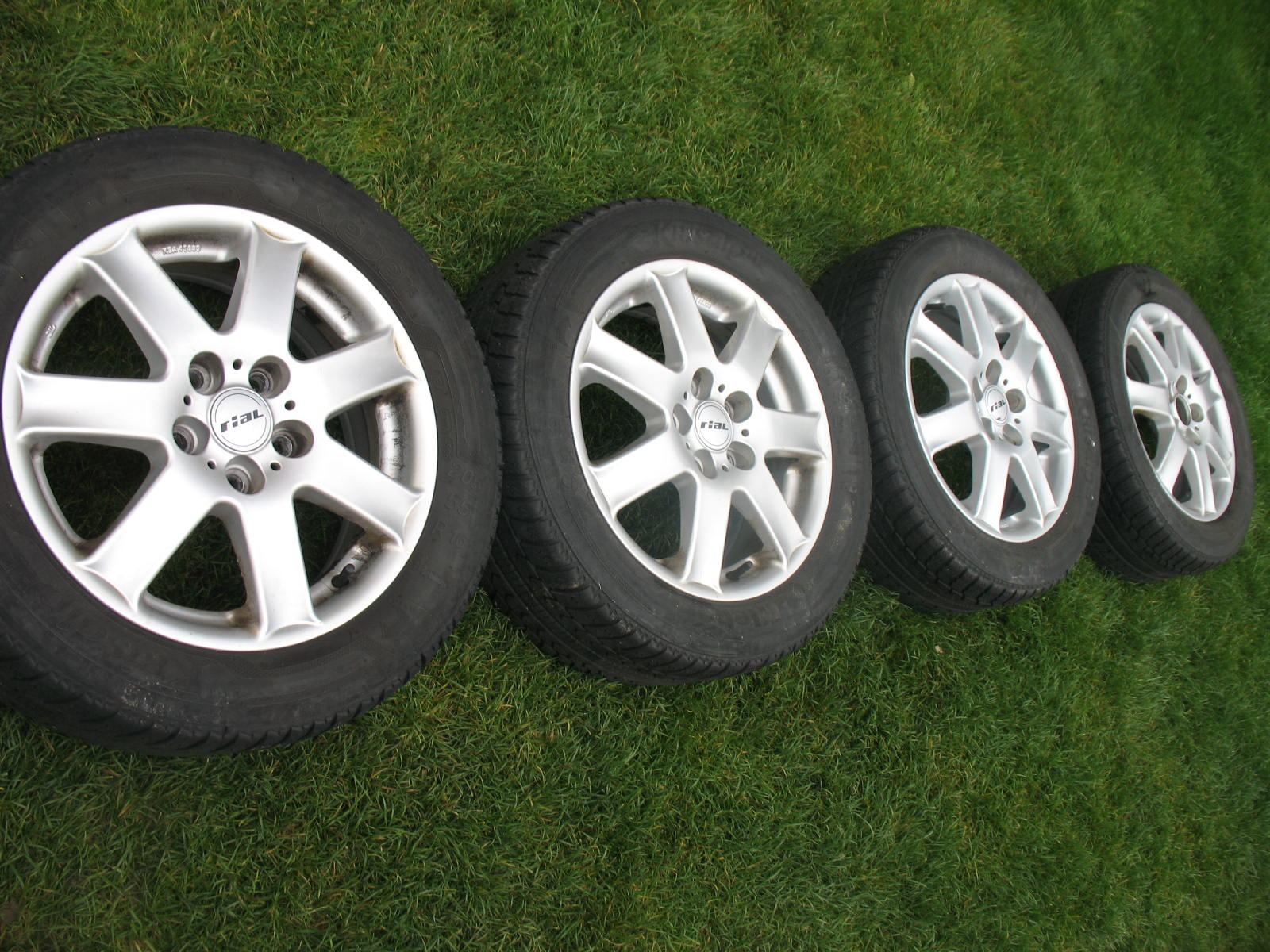 Prodám sadu Alu kol 16" rozteč 5x114,3 značky Rial.Kola mají nějaké oděrky,ale jinak jsou v pořádku.Chybí jedna středová poklička.Na kolech jsou zimní pneumatiky 205/55/R16 Kleber.Asi tak na tuto sezonu.