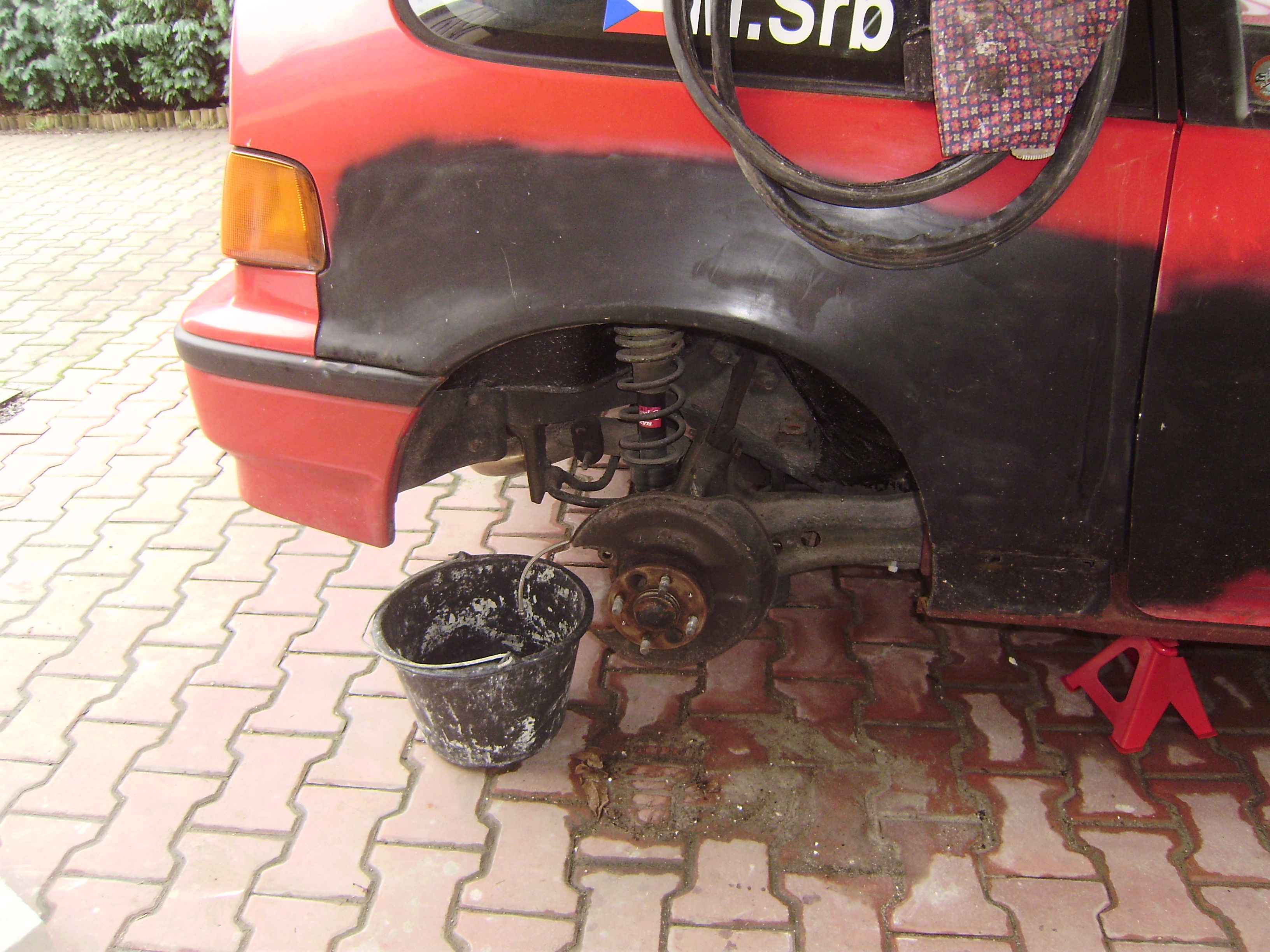zadni naprava, brzdice zadni, zadni kotouce a desky jsou pryc