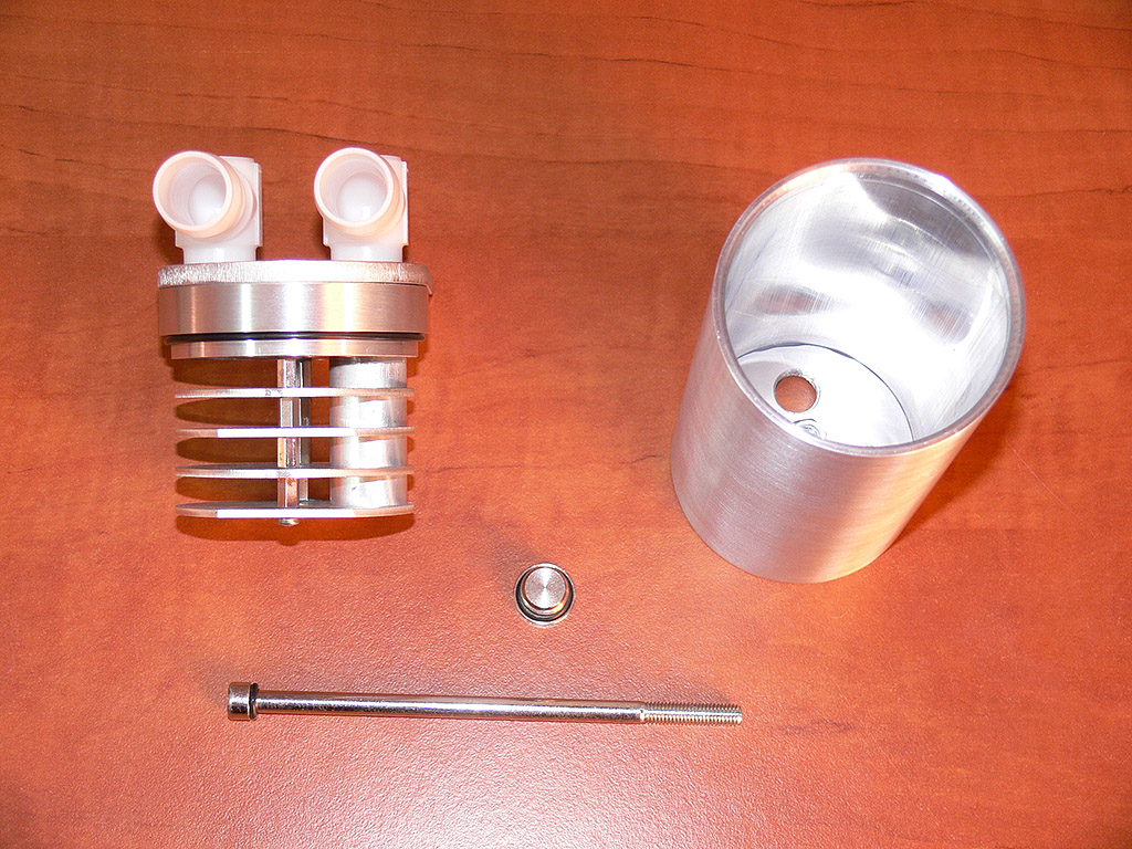 Ukázka víčka s úpravou separačních přepážek, drážkou pro těsnící O kroužek a novým gravírováním.