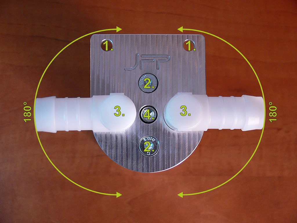 3. hadicové trny (před otočením do požadované pozice je nejprve nutné povolit aretační šrouby (2.))