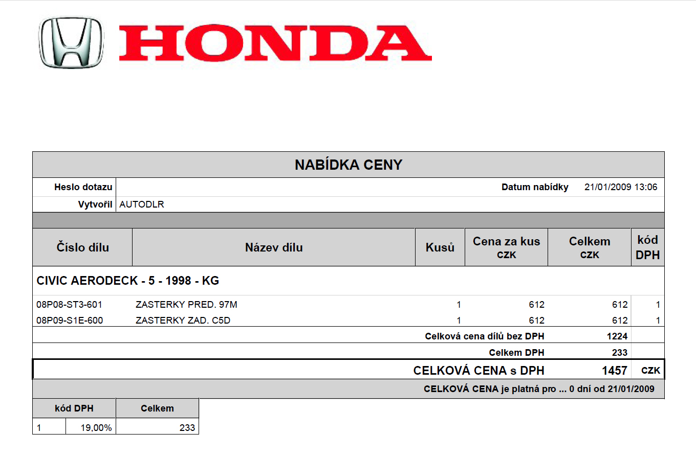 Tak bohužel. V Hondě mně řekli, že přední můžou objednat ale zadní už ne. Už prostě nejsou, alespoň prozatím. Byl jsem i na vrakáči v Lipůvce, tam měli jedny zadní údajně na Aerodecka, tak sem je zkusil a díry tak nějak seděli ale vnější tvar nárazníku neseděl. Takže kdyby někdo měl doma aspoň ty zadní, tak beru:)