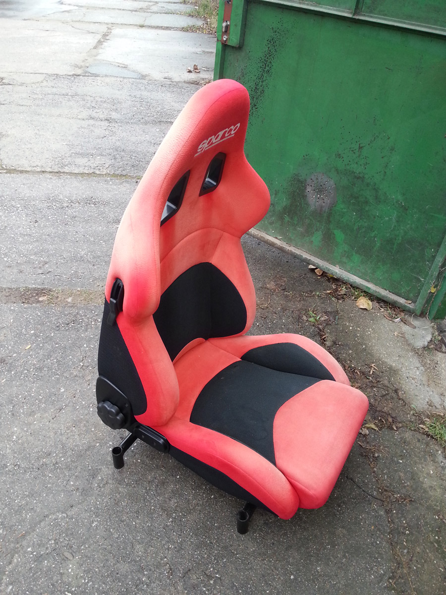 Kolega s mx-5 prodává "Prodám sedačky SPARCO včetně FIA homologovaných pojezdů. Stav viz foto, koupil jsem na blint nevhodné do mx-5 (příliš velké)"