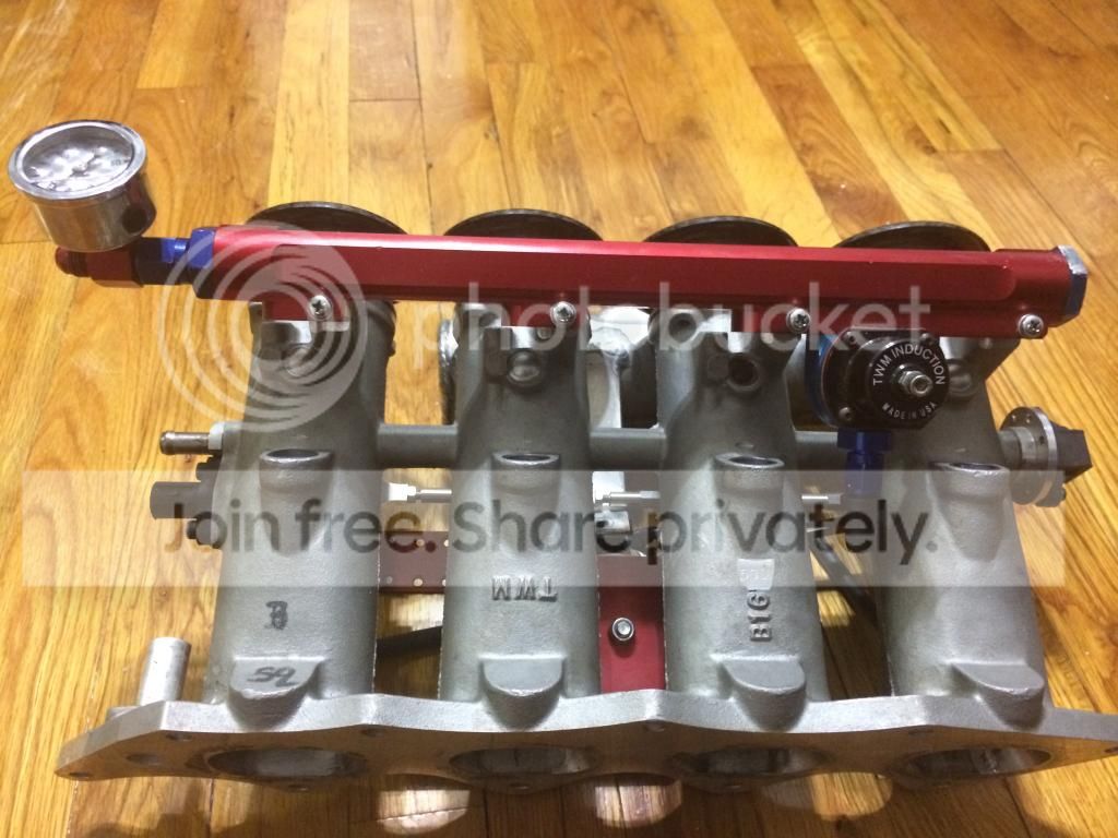 and TWM ITB 52mm Air Horn Carbon complete with fuel rail ,fuel regulator ,fuel pressure regulator,vacuu lines, map sensor ,tps sensor ,air sensor