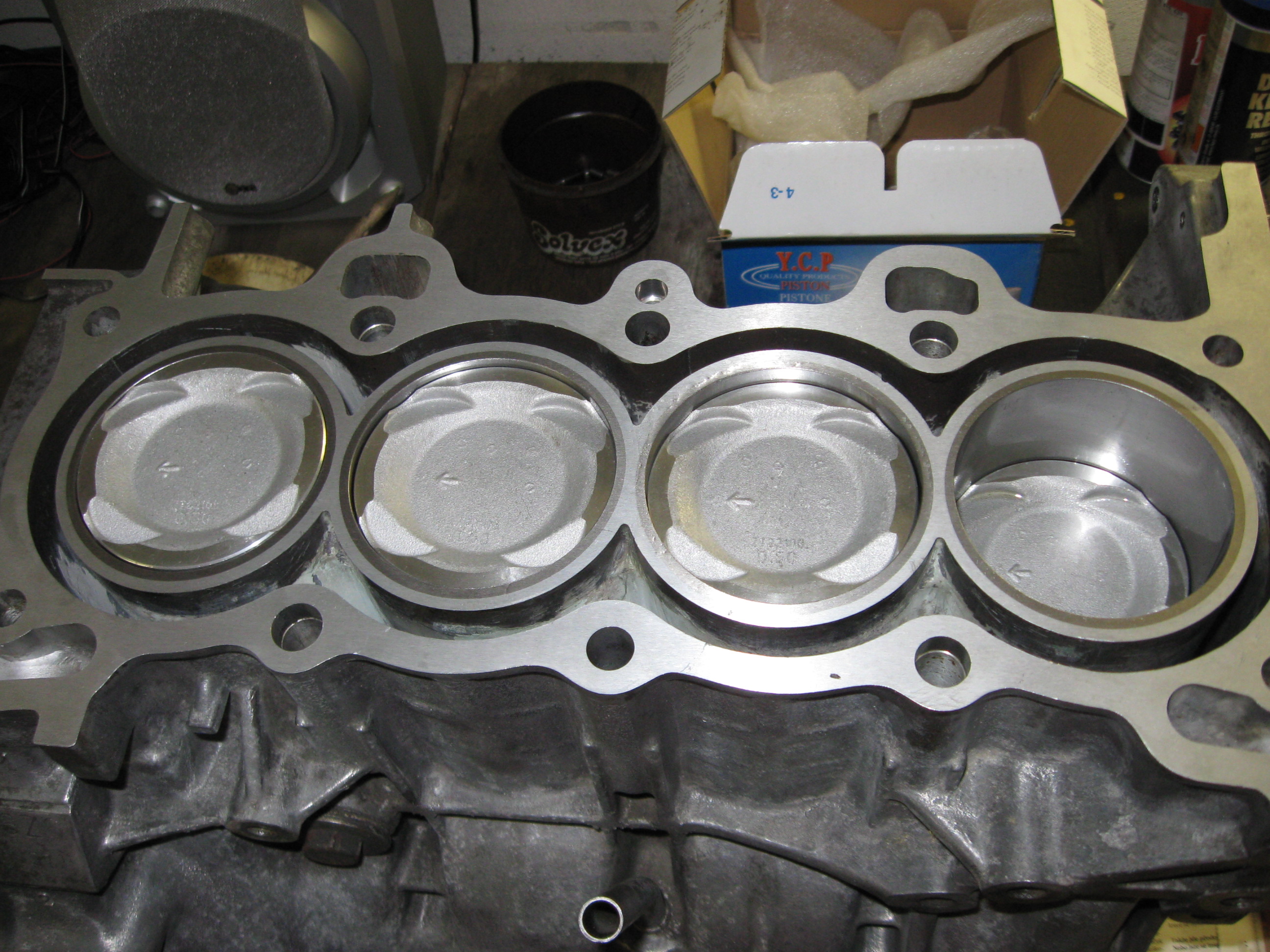 Jojo ideálně šipka k převodovce, posílám svoje foto - Suzuki má rozvody/převodovku obráceně a vybrání v pístech pro sací ventily (větší) by měly směřovat k sacím ventilům